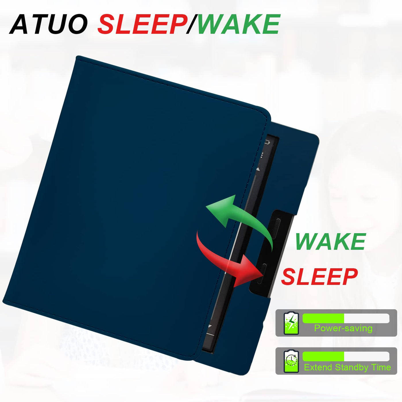Q: How does the auto sleep/wake feature work?A: The auto sleep/wake feature utilizes a magnetic design, allowing the case to automatically wake your Kindle Oasis when opened and put it to sleep when closed, helping to save battery life.