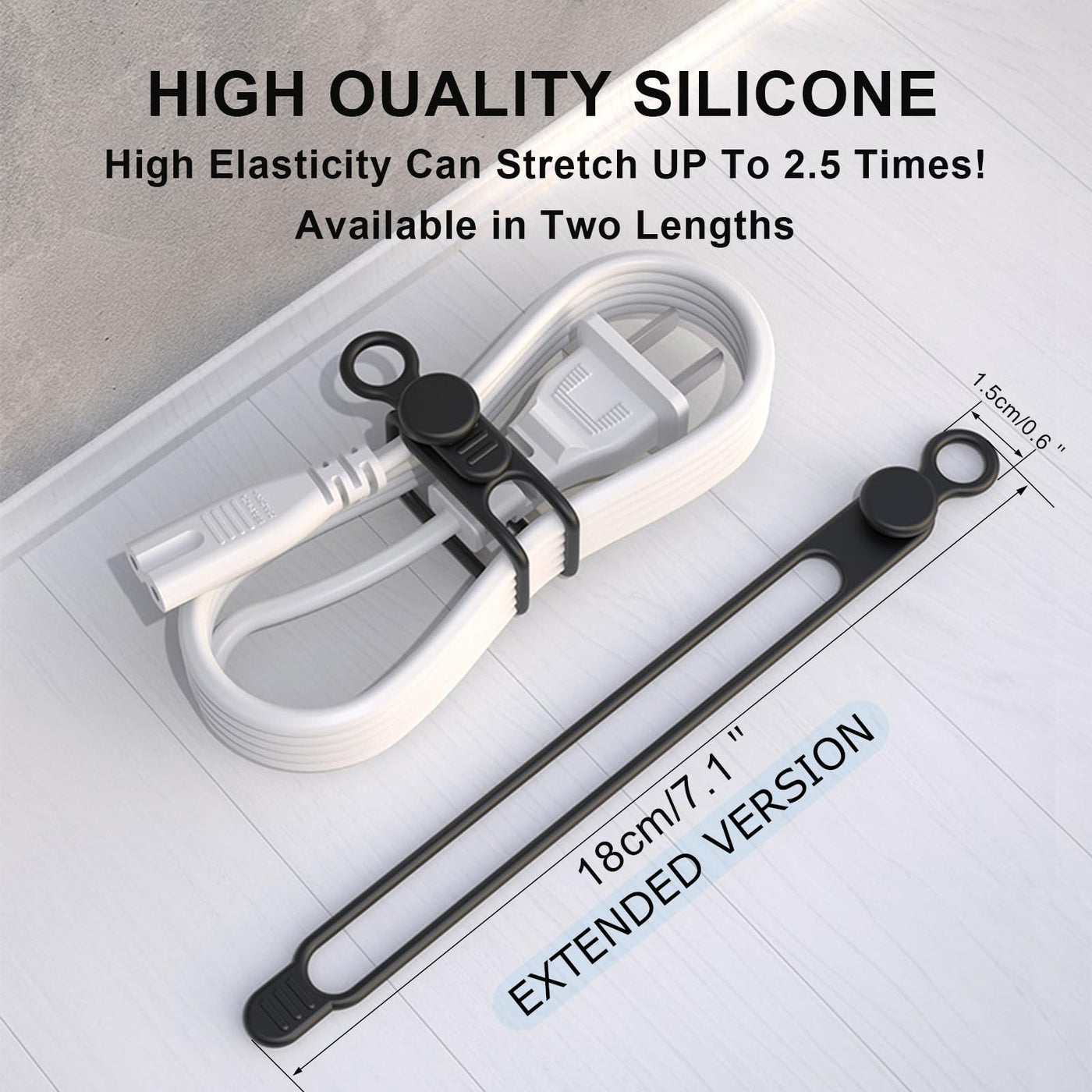 10Pcs Multi-Function 7.1Inch Silicone Fastening Cable Management,You Can Organize More Large-Sized Items ,Extra-Long Size,Wider Range Of Uses,Using It Will Make Your Living Area More Comfortable. Silicone Cable Straps,Cord Ties,Wire Organizer,Reusable Cord Organizer For Kitchen,Home,Garden,Travel(Black&White)