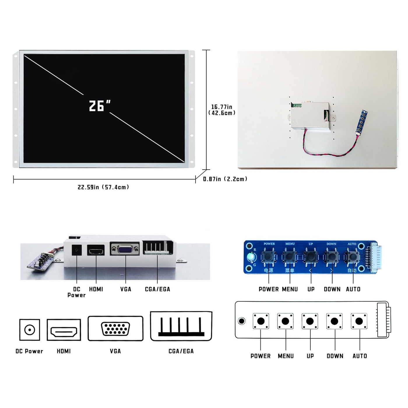 Unico 26 Inch Arcade Monitor, 4:3 Ratio Lcd Gaming Monitor For Hdmi/Vga/Cga/Ega Arcade Machine, Easy Install Monitor Arcade Acce