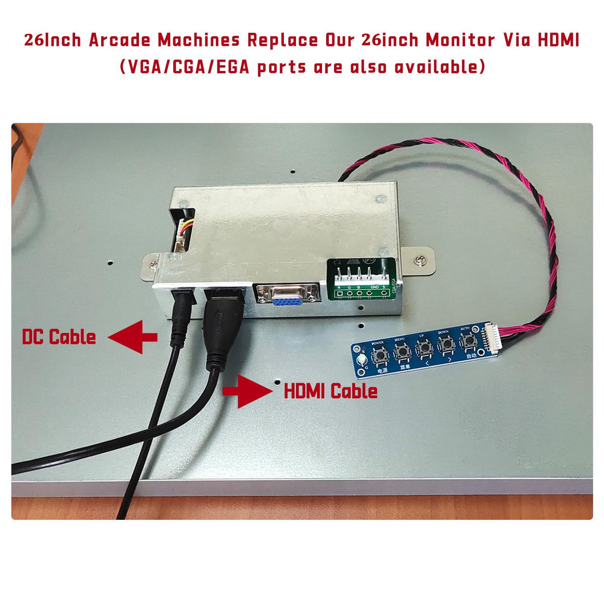 Q: Is the UNICO 26 inch Arcade Monitor compatible with all types of arcade machines?A: Yes, the UNICO 26 inch Arcade Monitor is designed to be compatible with 99% of 26 inch arcade machines, including popular models like Arcade 1up, and supports CGA, EGA, HDMI, and VGA signals.