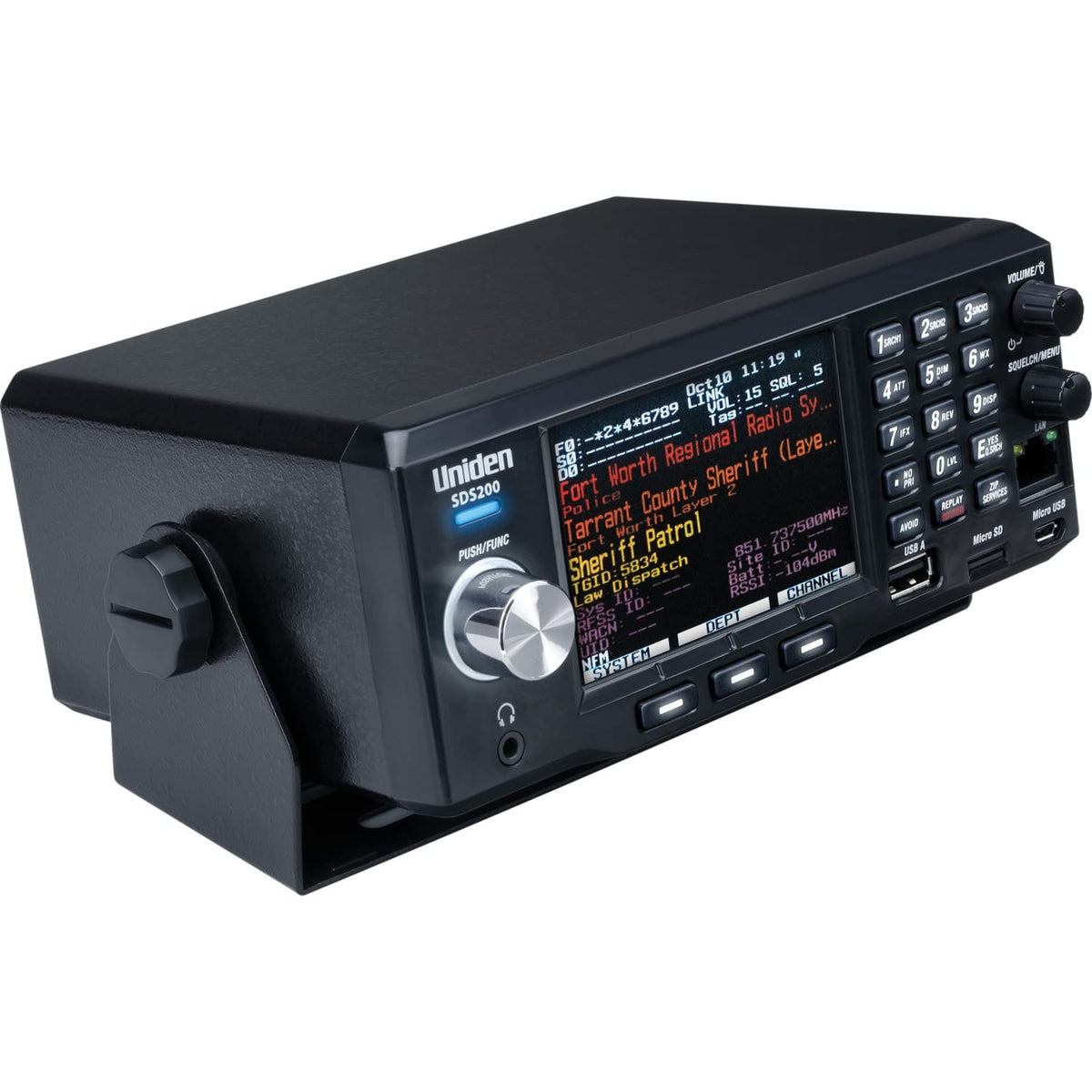 The Uniden Bearcat Sds200 Has The Same Features As The High Performance Handheld Sds100 , Plus More, In Larger Base Mobile Form Advanced Digital Trucking Scanner Frequency Range Of 25-512Mhz, 758-824, 849-869, 895-960 And 1240-1300Mhz True Iq Receiver Technology, Which Provides Unsurpassed Digital Performance Features Include: True Iq Receiver, Trunk Tracker X, Direct Ethernet Connectivity For Streaming And Control, Pldplnac, Complete Usacanada Radio Database Built In With Alphanumeric, Frequencies, , And More, With Free Lifetime Updates, Location Control , 3 5 Customizable Color Display The Sds200 Includes Apco P25 Phase I And Ii, Motorola, Edacs, And Ltr Trucking, Air Band, Marine Weather And Analog With Optional Paid Downloadable Upgrades Andor Optional Software From The Mfgs Websitem, It Can Also Do Capacity + And Connect +, Dmr Tier Iii, Xpt, Single-Channel Dmr, Nxdn 4800 And 9600 And Edacs Free Uniden Sentinel Software Keeps The Sds200 Database And Firmware Up To Deludes Ac Adapter, 12Vdc Power Cables, Usb Cable, 8 Gb Microsd Card, Bnc Telescopic Antenna Mounting Bracket And Printed Owners Manual