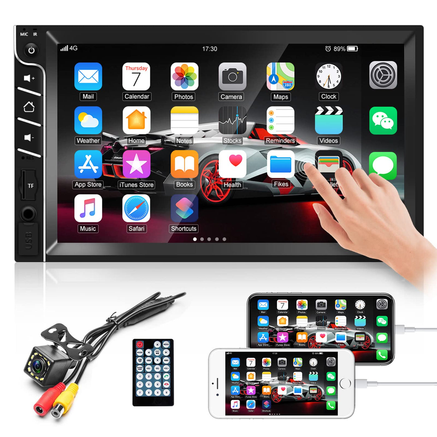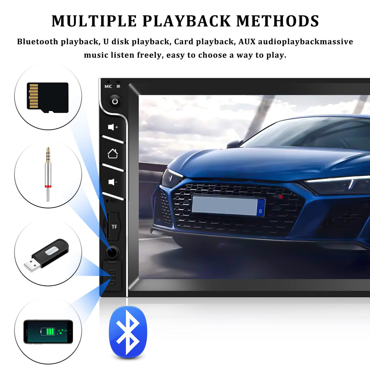 Double Din Car Stereo Radio Car Mp5 Player 7'' Hd Touch Screen With Bluetooth Fm Radio Receiver Support Rear View Camera Input, Swc, Mirror Link, Aux-In Usb Tf Multimedia Player With Backup Camera Specifics System: Wince Chipset: C200S Screen Size: 7'' Screen Resolution: 800*480 Mirror Link: Support Android/Ios Radio Band: Fm Radio Chip: Qn8035 Power Output: 4*50W Bluetooth Name: Car Bt Work Temperature: -10?-60? Steering Wheel Control Function: Support Power Amplifier Chip: Tda7388 Radio Frequency: 87.5-108Mhz Wifi: Not Support Gps: Not Support Usb Version: 2.0 Support Rmvb / Rm / Flv / 3Gp / Mpeg / Dvix / Xvid / Dta / Vob / Avi Video File Format Support Mp3 / Wma / Wmv / Ogg / Ape / Acc / Flac Audio File Format. Support Jpeg / Bmp / Gif / Tif Image Format Scan Language: English, Spanish, Portuguese, Russian, Italian, German, French, Japanese, Polish, Turkish, Czech, Ukrainian, Chinese Product Included 1 X Car Mp5 Player 1 X Backup Camera 1 X Power Cable 1 X Speaker Cable 1 X Remote Control 1 X User Manual