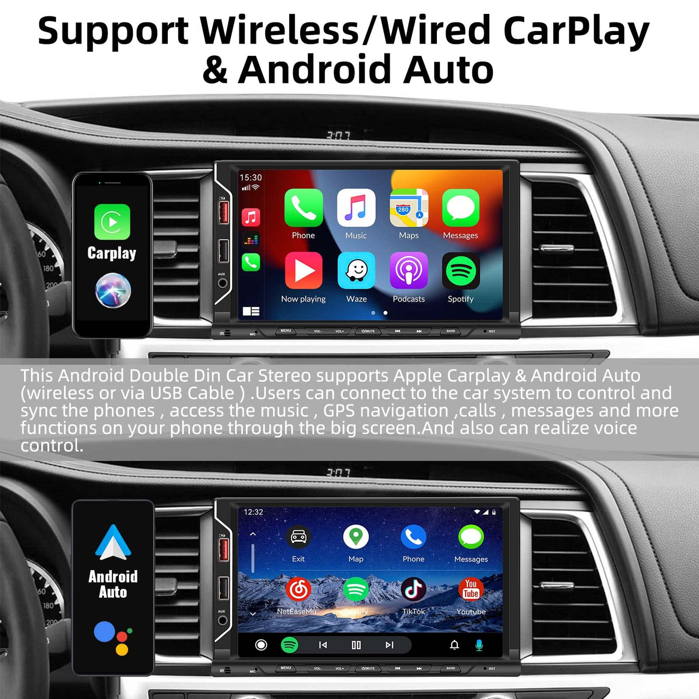 Unitopsci Double Din Car Stereo, Wireless Carplay Android Auto Radio, Bluetooth Head Unit 7 Inch Hd Touch Screen Mp5 Player Mirr