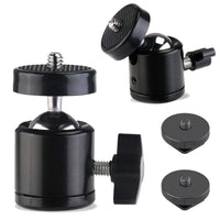 Universal 1/4'' Swivel Mini Ball Head Screw Tripod Mount With Hot Shoe, 360 Degree Rotating Mount Base Adapter For Dslr Cameras Htc Vive Tripods Monopods Camcorder Light Stand 1. This Ball Head Is Easy To Carry And Install. 2. Can Withstand Heavy And Move Smoothly. 3. Designed To Fit Most Camera, Projector, Flashlight, Light Stand, Ring Light, And Tripod That Have A Standard 1/4'' Thread Hole. 4.360-Degree Rotation Swivel Mini Tripod Ball Head. 6. Made Of Solid Aluminum And Metal, The Locking Nut Is Made Of Plastic. Specification: - Material:Aluminum Alloy,Metal And Pvc - Thread:1/4'' - Pan: 360 . - Diameter: 1.14''/29Mm - Height:2.17''/ 55Mm - Weight:2.7 Ounce/78G Package : 2 X Ball Head 2 X Hot Shoes