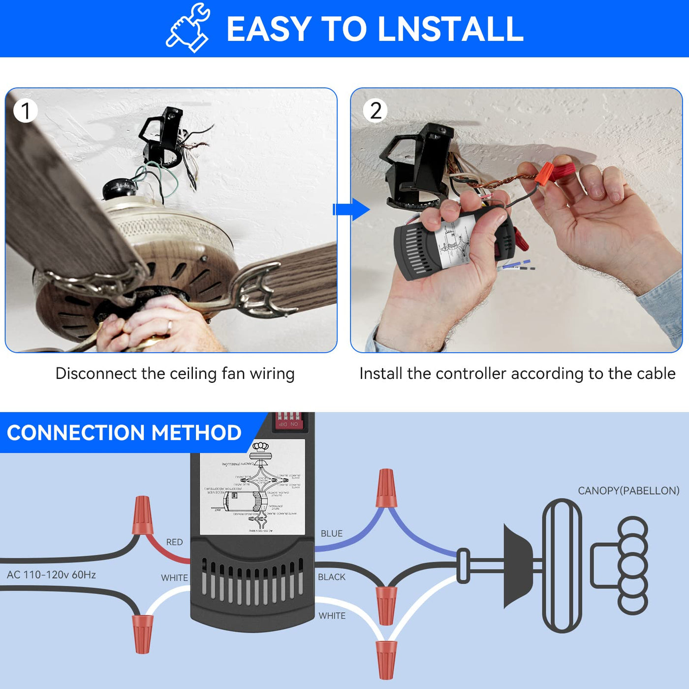Universal Ceiling Fan Remote Control Kit, Replacement For Harbor Breeze, Hampton Bay, Hunter, Receiver Fan28R Light Dimmer, Repl