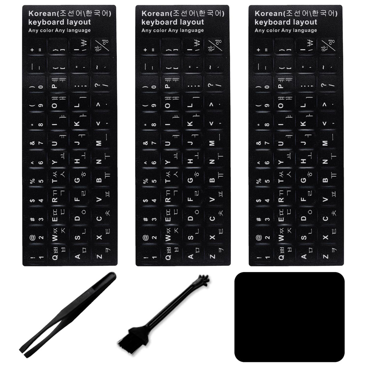 Universal Korean Keyboard Stickers (6 In 1), Black Background With White Lettering For Computer Laptop Notebook Desktop, Replace