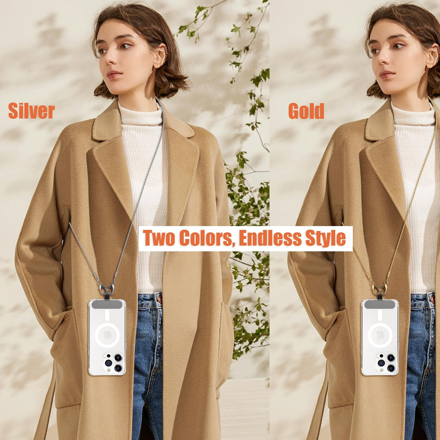 Unnfiko 2Pcs Crossbody Cell Phone Lanyard For Women, Universal Metal Phone Chain Strap Crossbody With Phone Tether Tab (Gold & S