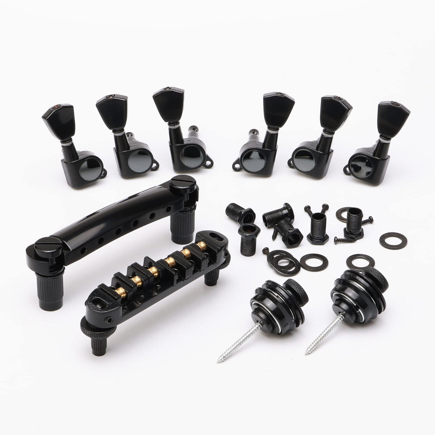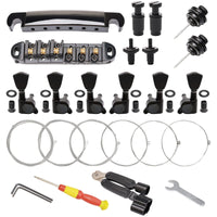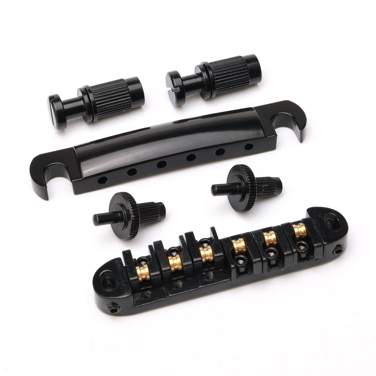 Unxuey Guitar Roller Saddle Tune O Matic Guitar Bridge And Tailpiece For Lp Electric Guitar, With 3L3R String Tuning Pegs, 6Pcs