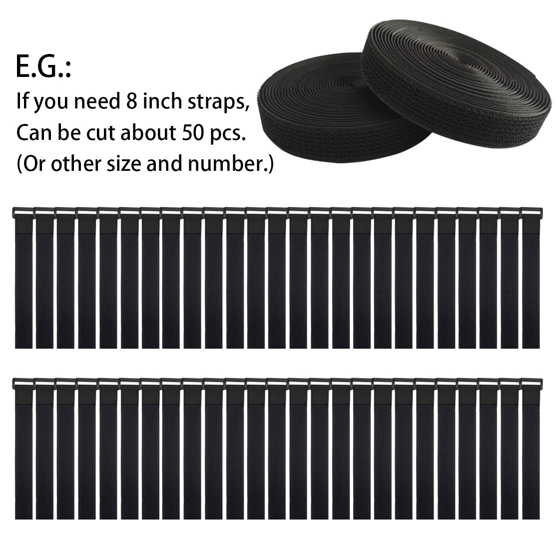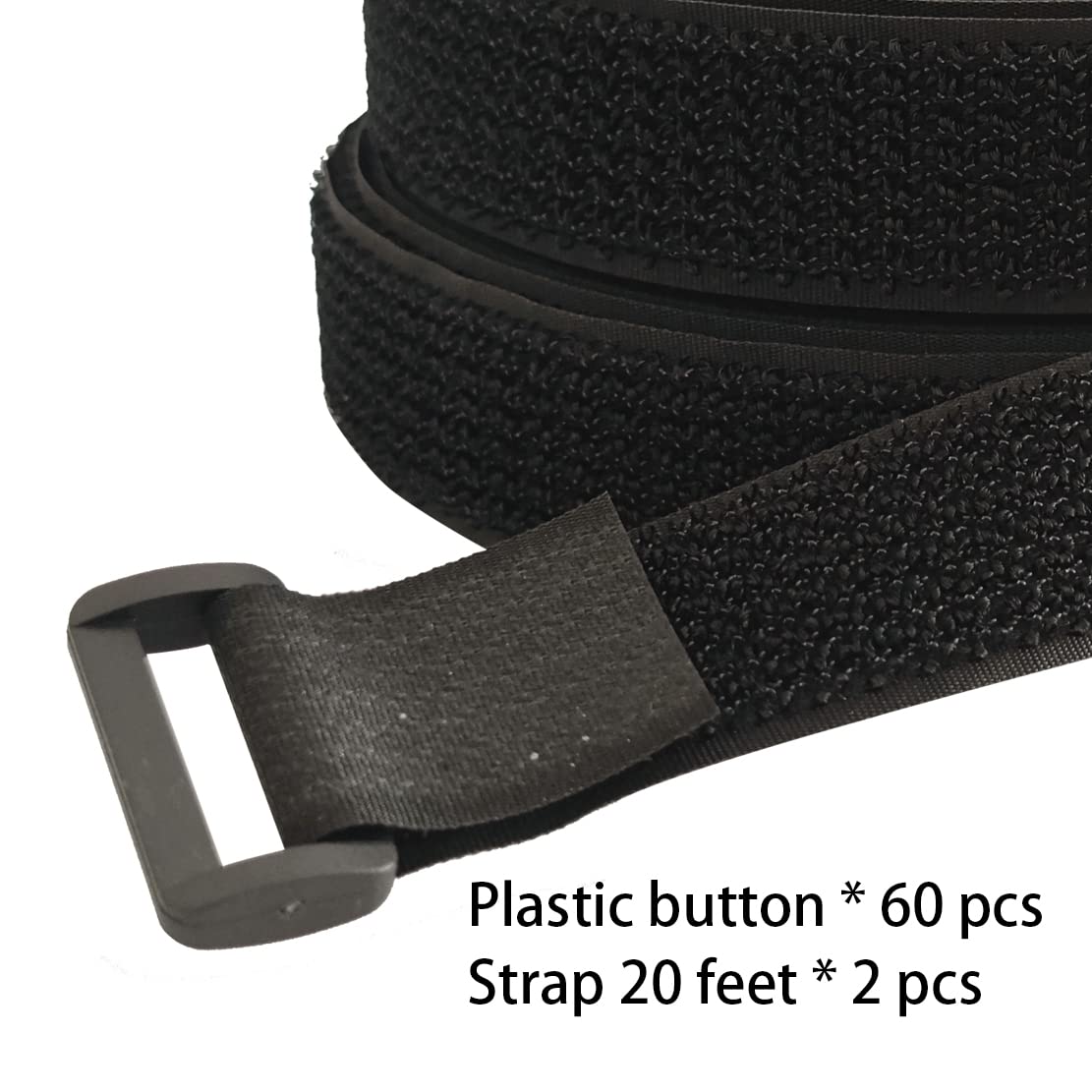 Uonika 40Ft Hook And Loop Straps With 60 Buckles, Adjustable Reusable Cable Straps, Arbitrarily Cut Fixing Nylon Cinch Strap