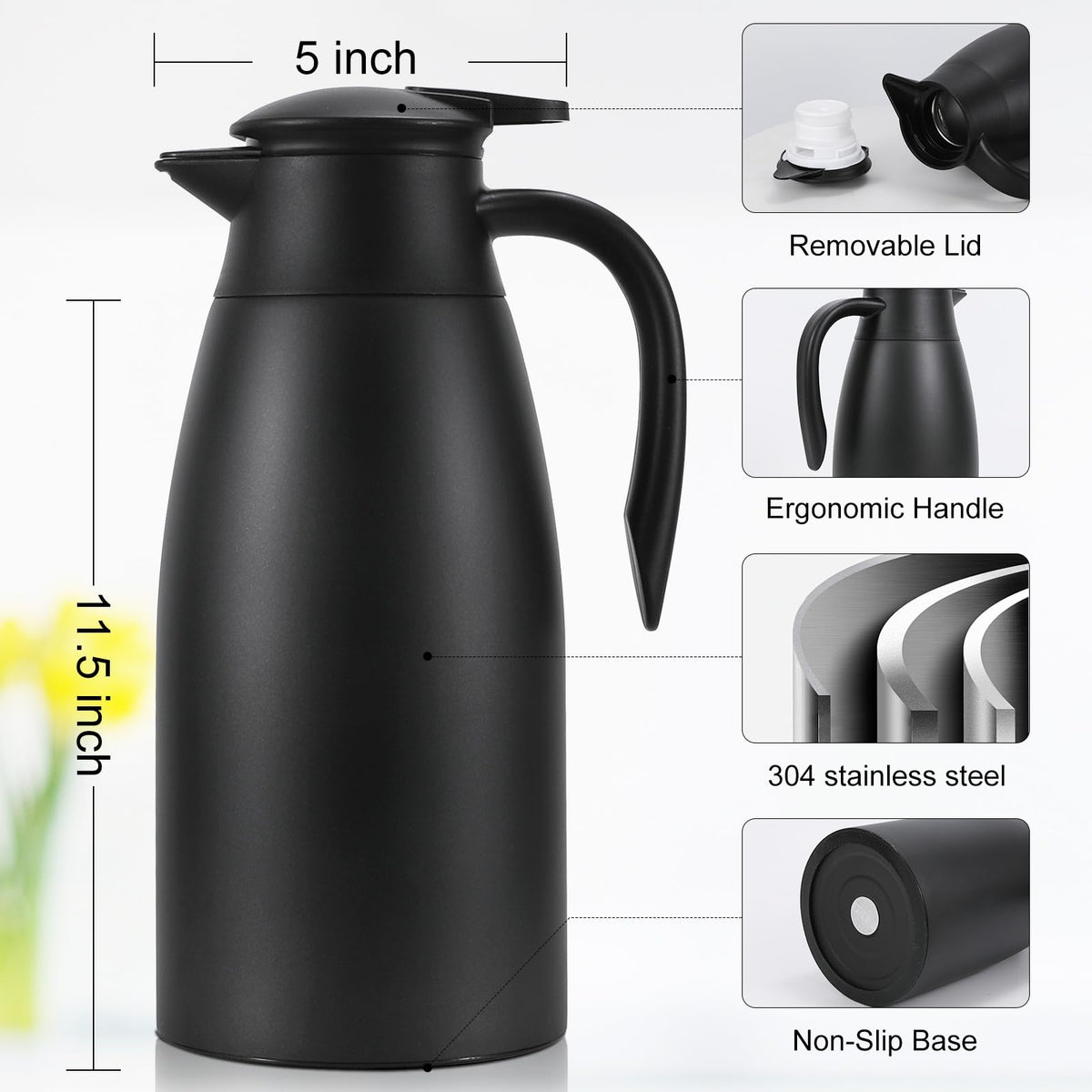 Updated Thermal Coffee Carafe, 70 Oz Insulated Stainless Steel Coffee Carafes For Keeping Hot Coffee & Water Hot Beverage 12Hour