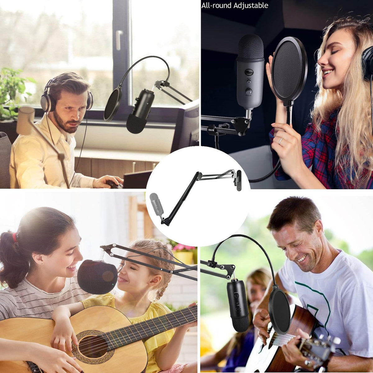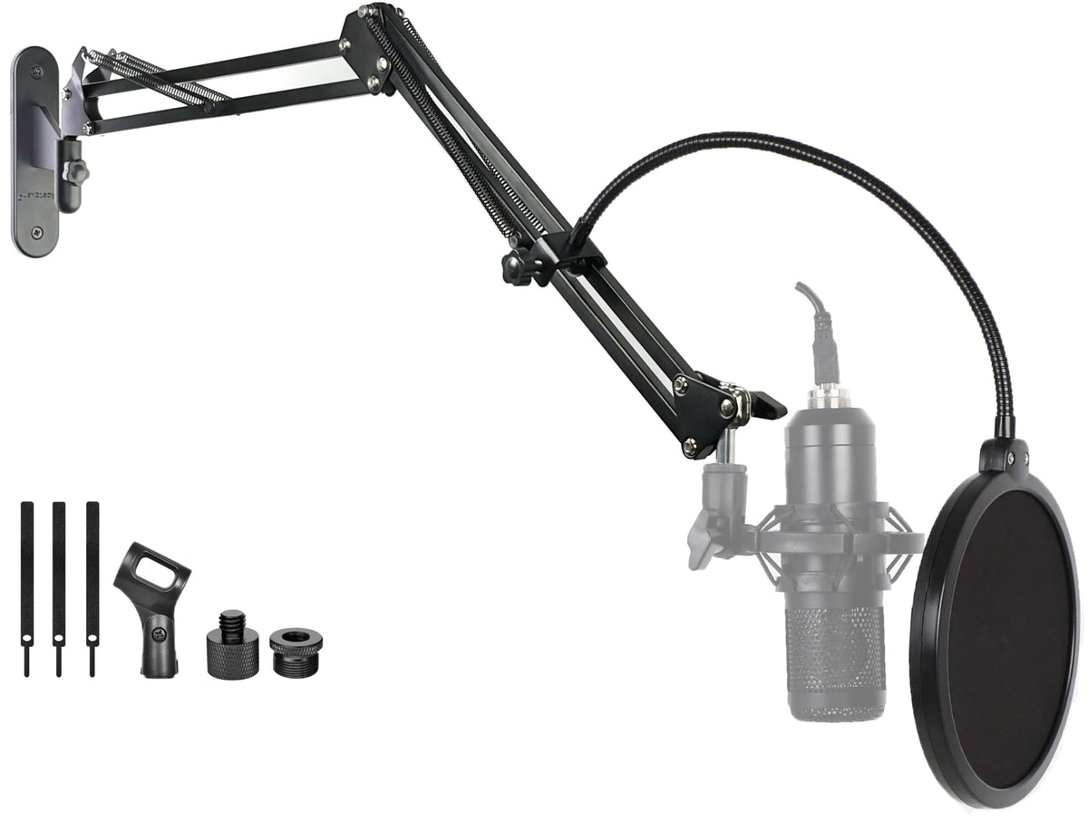 Upgrade Mic Wall Mount,Microphone Boom Arm Wall Stand Holder For Logitech Blue Yeti,Razer,Hyperx,Shure,Rode Mic Broadcasting, Voice-Over Sound,Streaming And Recording-Booth Overview: Compatible With Tiktok,Youtube Video, Radio Broadcasting Studio, Voice Sound Recording, Home Studio, Tv Stations, Etc Completely Flexible, Firmly Attach The Portable Recorders On Wall Or Sideboard. Upgraded Wall Bracket, More Sturdable, Lightweight And Less Space-Consuming, Easier To Carry. The Plastic Lastic Mic Clip (Included), Sturdy And Durable. It Is Made Of Durable Steel Frame,Folding Type, Convenient To Carry. The Foldable Arms Allow You To Adjust The Suitable Angle And Height To Show Your Perfect Voice. This Portable Recorder Mount With Standard 1/4 -20 Thread, And Extra Comes With One 3/8 -16 And 5/8 -27 Mic Adapter; Microphone Wall Mount Max. Load Capacity Is Approx 2.2 Lbs/1 Kilogram What You Get: 1X Mic Suspension Boom Arm; 1X Upgraded Wall Mount With Screws Set; 1X Microphone Pop Filter; 1X 3/8 -16 Mic Adapter And 5/8 -27 Mic Adapter; 1X Universal Mic Clip; 3X Microphone Cable Ties; Compatible With Blue Yeti Nano Snowball Ember Xlr; Compatible With Shure Mv7+,Mv7X,Sm7B,Pga48,Sm57,Mv5, Mv51,Sm58,Mv1; Compatible With Hyperx Duocast,Quadcast, Solocast; Compatible With Fifine K669B K678 K669S K669 K690 K669G K669L; Compatible With Elgato Wave 3, Wave Dx Microphones; Compatible With Razer Seiren Mini, Seiren V2 X,Seiren V3; Compatible With Logitech G Yeti Orb,Yeti Gx Dynamic Rgb Gaming Microphones; Compatible With Usb Microphones,Condenser Microphones,Gaming Microphones; Compatible With Zoom H1Essential,H4Essential,H6Essential,R4,Q2N,H2,H5,H6,H8,H4N,Mictrakrecorders; Compatible With Tascam Dr-07X,Dr-05X,Dr-05,Dr-40X, Portacapture X6,Portacapture X8 Recorders;