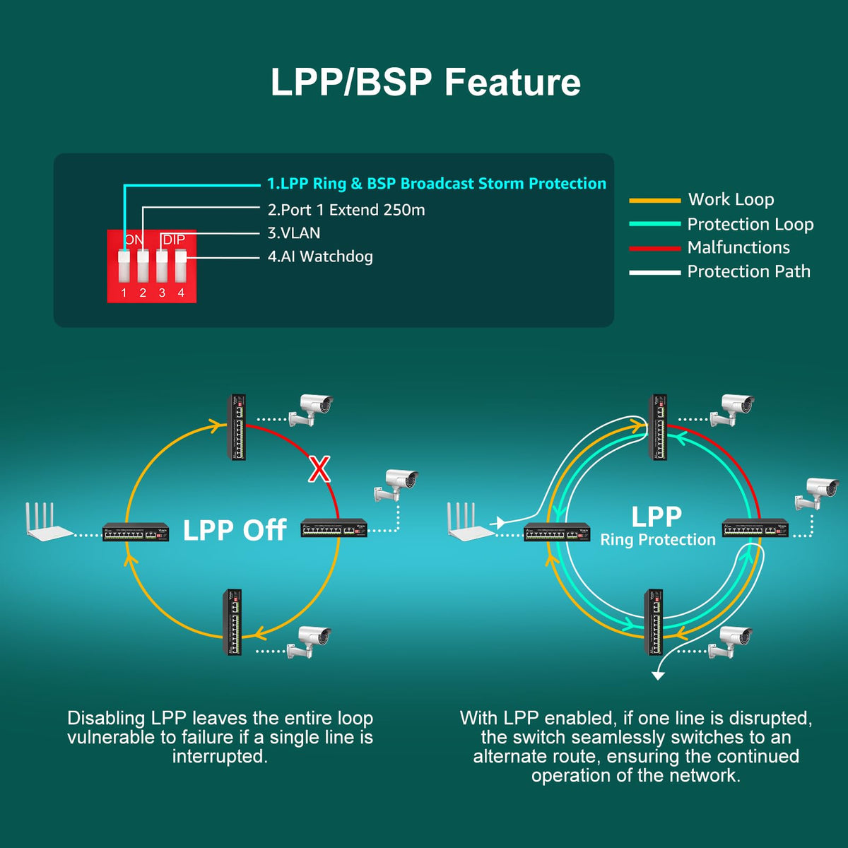 [Upgraded] 10-Port Gigabit Poe Switch With 8 Port Poe, Vimin 8-Port Unmanaged 10/100/1000Mbps Network Poe Switch With 2 Uplink Ports, Ai Watchdog, Vlan, Extend 250M, Support Ieee802.3Af/At