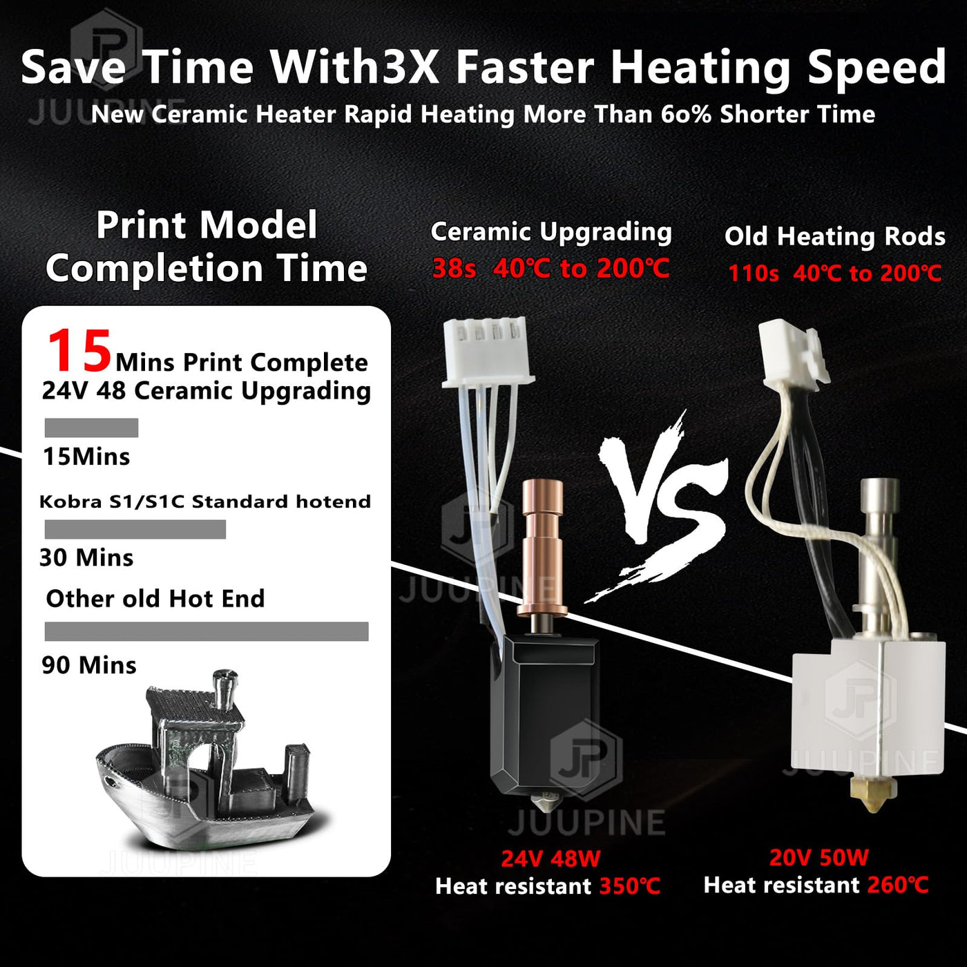 Upgraded 3 Pack Hardened Ceramic Hotend For Kobra S1 Combo 0.2Mm 0.4Mm 0.6Mm Stainless Steel Print Head Extruder Kit Hot End Heater Block Heating Rod Thermistor Nozzle For Anycubic Kobra S1/Ace Pro
