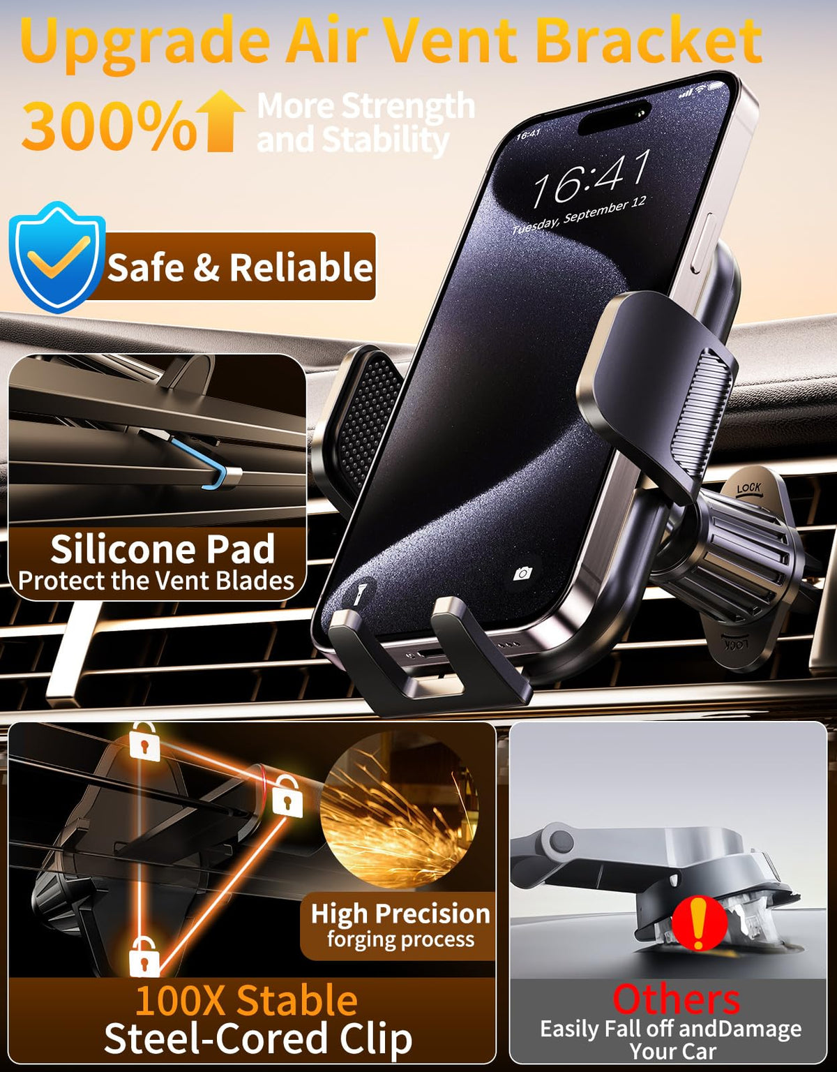 This Is A 2025 Upgraded Vent Car Holder That Is Compatible With All Smartphones, Thick Shell Friendly, And Equipped With Three Wire Managers.