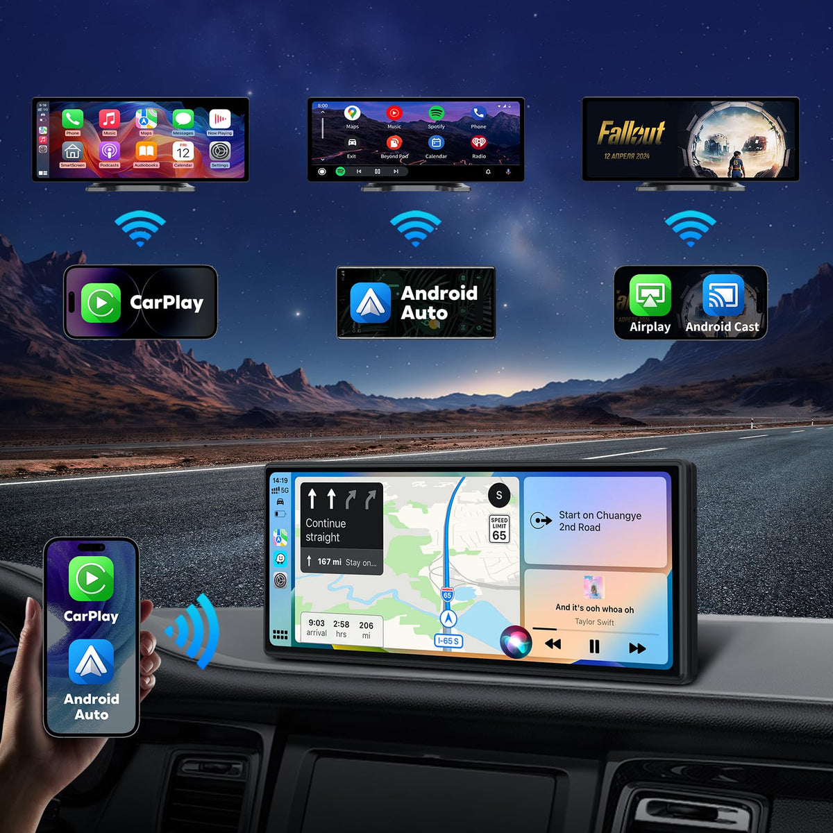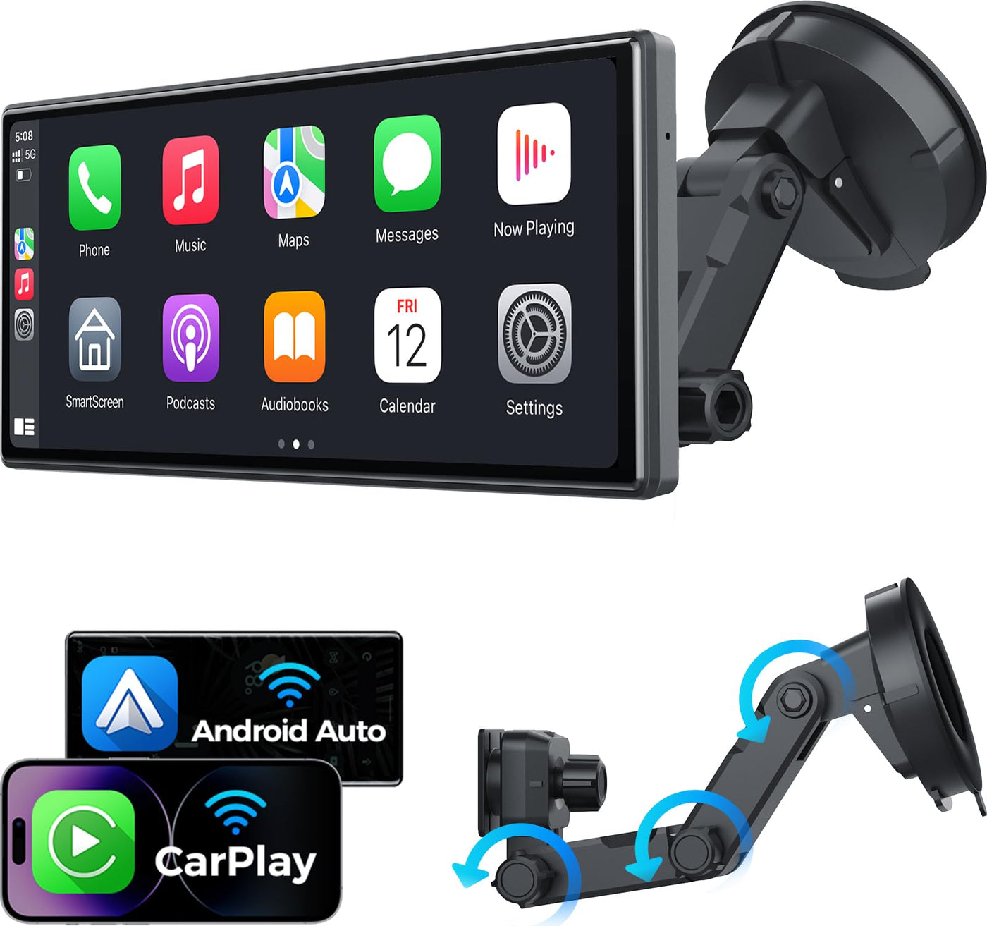 [Upgraded Hd Screen With Secure Strong Bracket] Portable 10.26'' Wireless Carplay & Android Auto Screen For Car, Voice Control/G