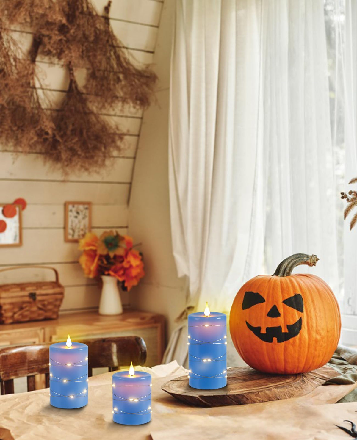 Upinmz Flameless Candle With String Of Lights Battery Powered Led Candle Flashing Candle With Remote Control And Timer 3 Packs (