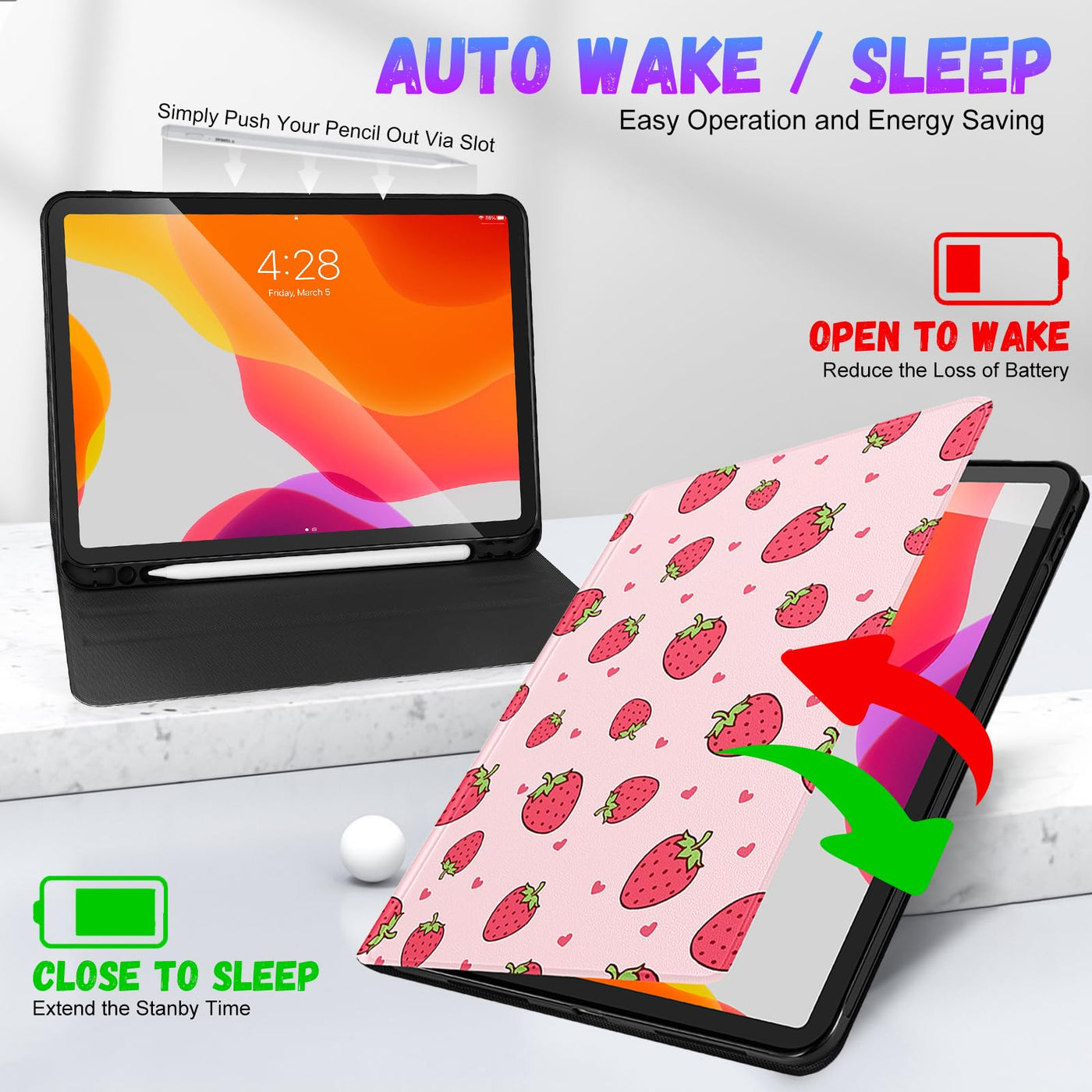 Uppuppy For Ipad Air 11 Inch Case, Air 5Th/4Th Generation 10.9, Pro 11'' Case Cute Kids Women Girls Girly Strawberry With Apple