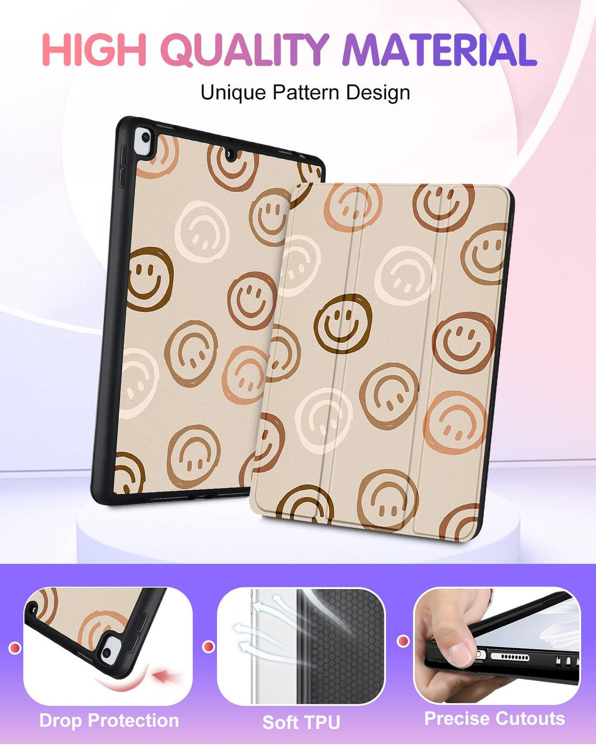 Compatibilitythis Table Case Only Compatible With Ipad 9Th/8Th/7Th Generation 10.2 Inch. Please Confirm Your Ipad Model Before Placing Your Order. Feature 1. Unique Durable Pattern Design Makes Your Ipad 9 Gen (2021) / Ipad 8 Gen (2020) / Ipad 7 Gen (2019) Case Different; 2. Prevent Your Ipad Ninth / Ipad Eighth / Ipad Seventh Damage From Accidental Drops And Wear And Tear From Daily Use; 3. Light High Quality Pu Leather And Soft Tpu Back Protector Cover, Make The Ipad Stand Securely At Multiple Viewing Angles Positions On The Table; 4. Precise Cutouts For Quick Access, Make It Easy Access To All Controls; 5. With The Built-In Apple Pencil Holder, This Funda Para Ipad 9/8/7 Can Prevent Your Apple Pencil From Being Lose Or Breaken.