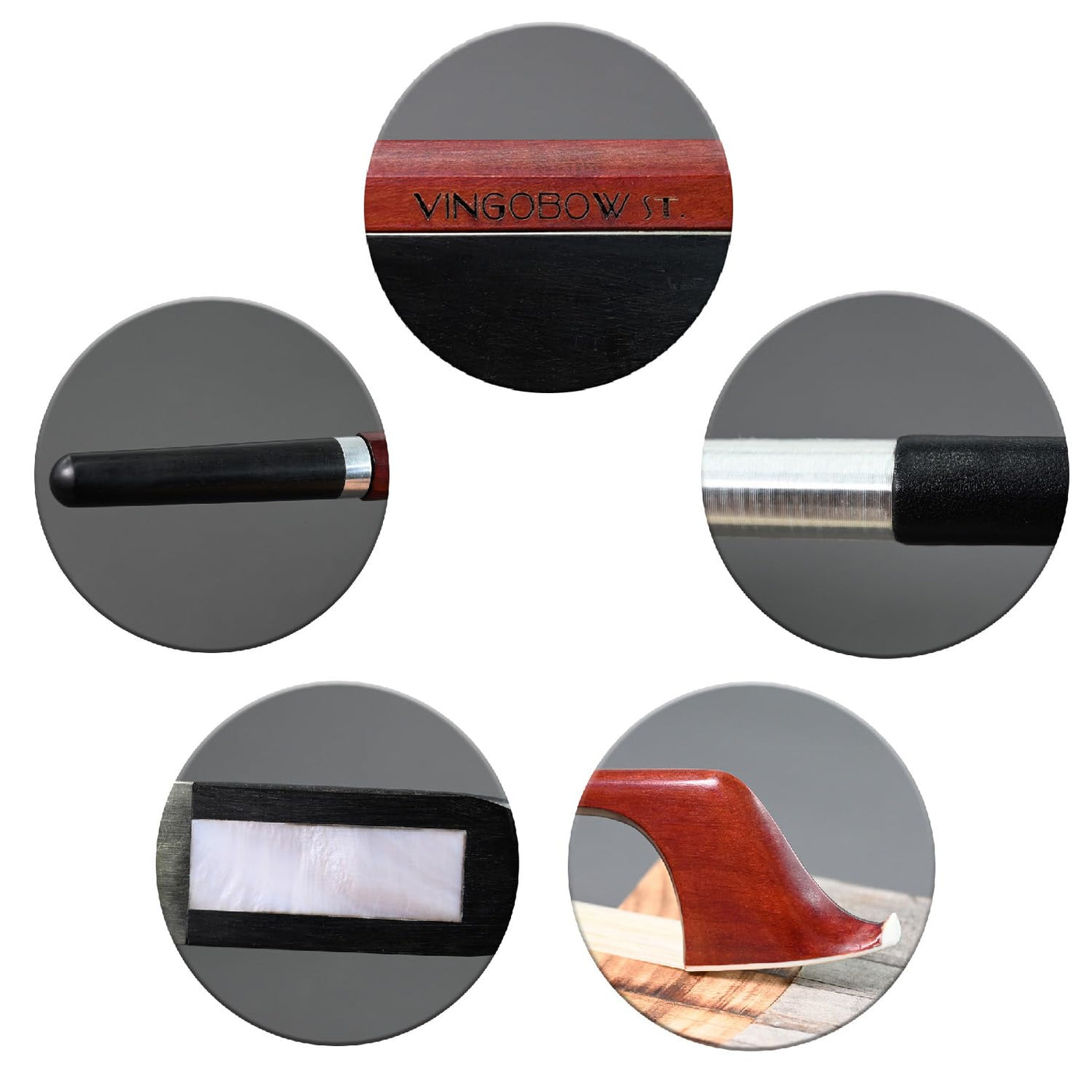 The Bow Has Brazilwood Stick, Air Dried More Than Five Years. Round Stick Shape, Great Wooden Bow Hand Feeling. Adopting Unbleached Mongolia Horsehair, It Will Offer You Sweet Sound. Black Ebony Frog Shows Natural Wood Grain,And Is Decorated With Classical Parisian Eyes. Genuine Leather Grip, Elegant Nickel Silver Thread Winding. All Parts Are Fitted By A Same Experienced Maker From The Start To Finish. It'S A Good Bow For Student.