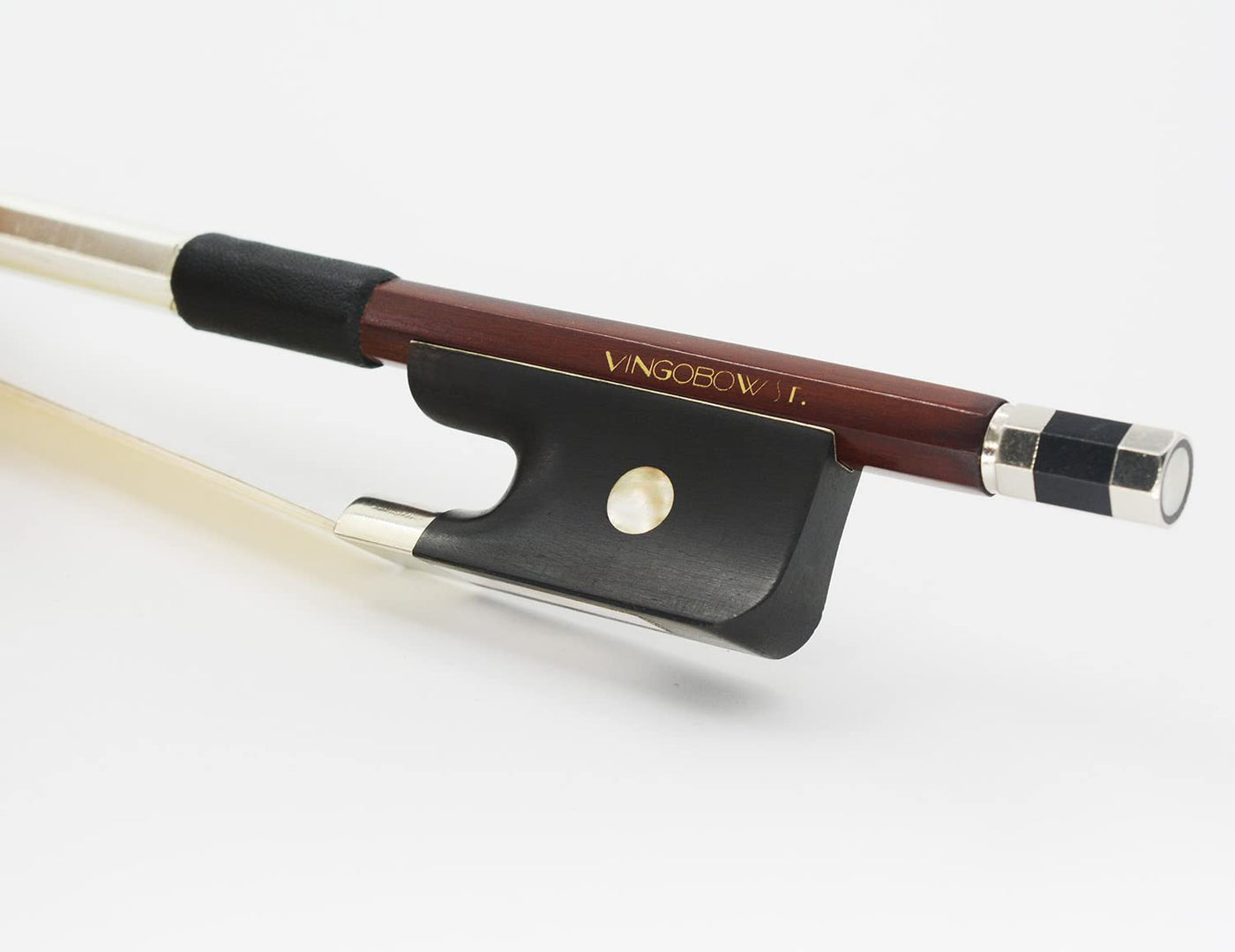 The Bow Has Brazilwood Stick, Air Dried More Than Five Years Round Stick Shape, Great Wooden Bow Hand Feeling Adopting Unbleached Mongolia Horsehair, It Will Offer You Sweet Sound Black Ebony Frog Shows Natural Wood Grain,And Is Decorated With Classical Parisian Eyes Genuine Leather Grip, Elegant Nickel Silver Thread Winding All Parts Are Fitted By A Same Experienced Maker From The Start To Finish Its A Good Bow For Student