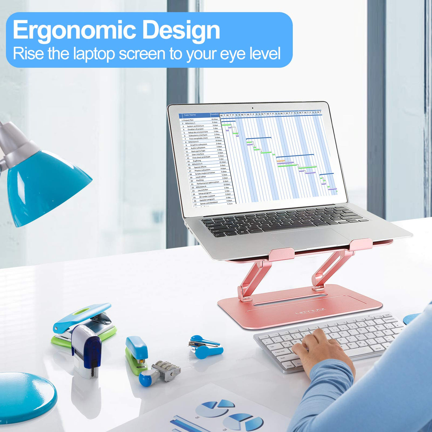 Q: How does the adjustable height feature benefit users?A: The adjustable height feature of the Urmust Laptop Stand allows users to elevate their laptop screen to eye level. This ergonomic design helps improve posture, reducing neck and shoulder pain, making it especially beneficial for teachers and students who spend long hours on their devices.