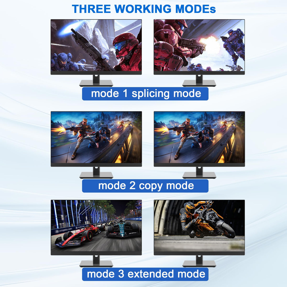 Q: What is a KVM switch and how does it work?A: A KVM switch (Keyboard, Video, Mouse) allows you to control multiple computers using a single set of keyboard, mouse, and monitors. This USB 3.0 HDMI KVM switch supports dual monitors and lets you switch between four computers seamlessly, making it ideal for multitasking and saving desk space.