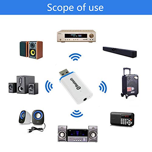 Usb Bluetooth Receiver Adapter Wireless Audio Adapter Car Kit Music Receiver For Home/Car Stereo Sound System, Portable Speskers, (Aux In) With 3.5Mm Cable (White)�