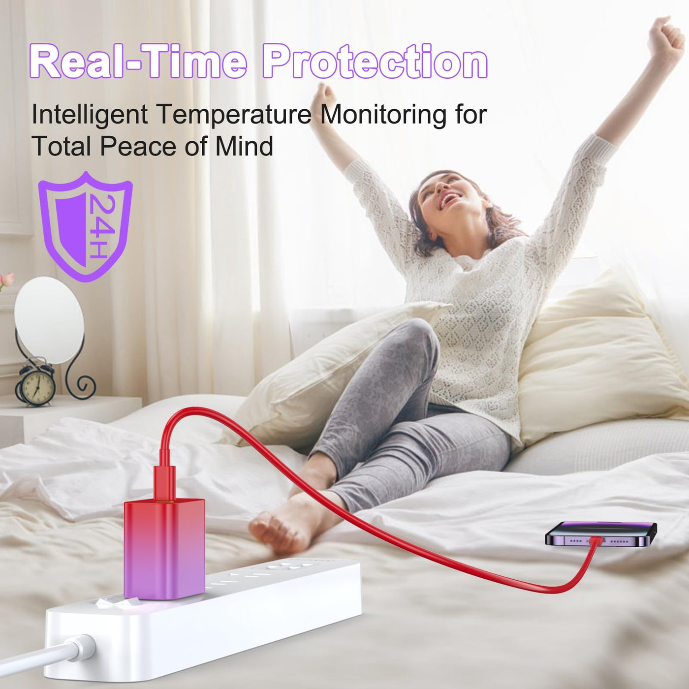 Q: What safety features does the iGENJUN charger include?A: The charger is equipped with an intelligent chip that provides over-current, over-voltage, over-heat, and short-circuit protection, ensuring safe and reliable charging for your devices.