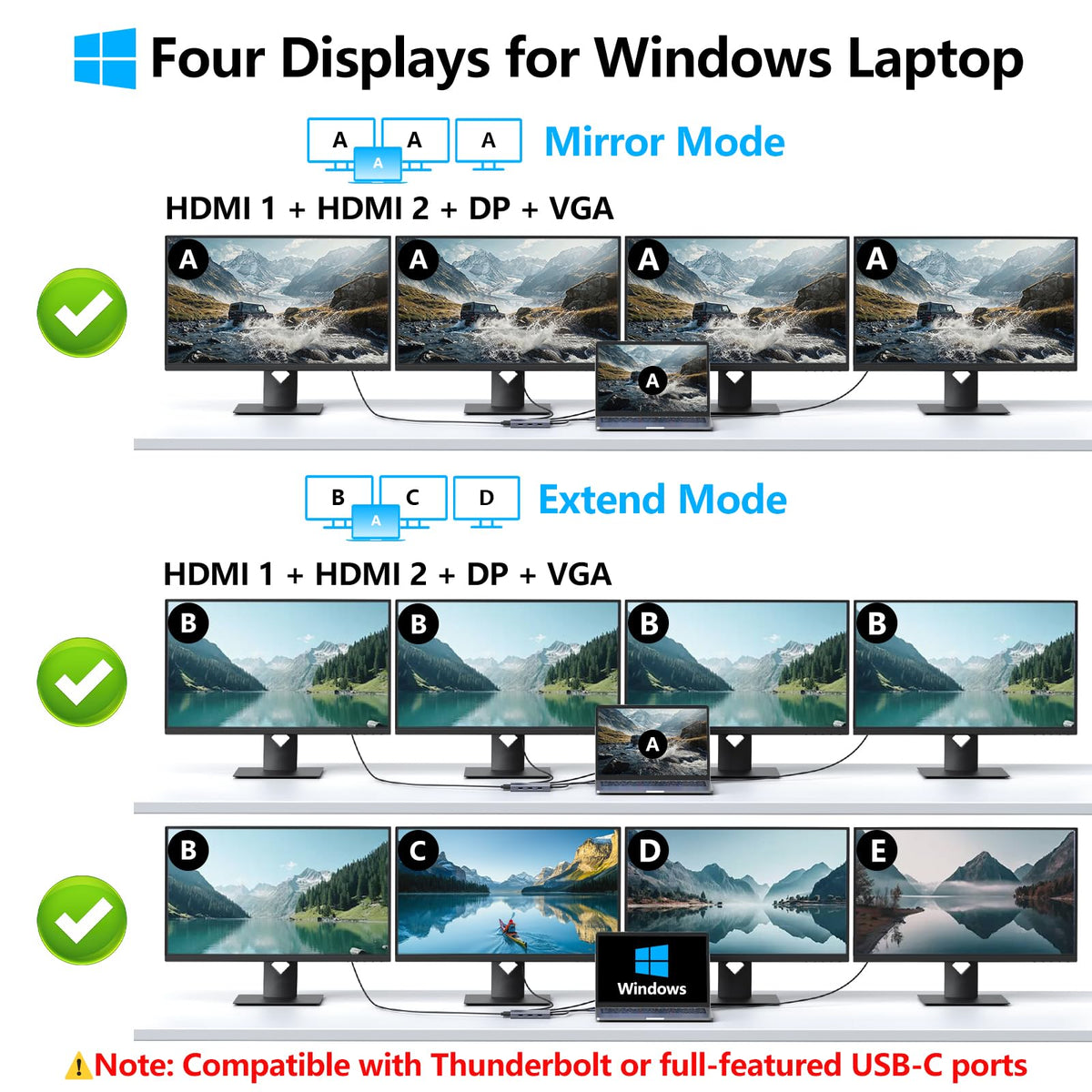 Usb C Docking Station Dual Hdmi Monitor Adapter, Melelink Usb C Hub 3 Monitors With 2X 4K Hdmi, 8K Displayport, Vga, 100W Pd, Usb C&A Ports, 9 In 1 Laptop Docking Station For Dell, Hp, Lenovo,Etc