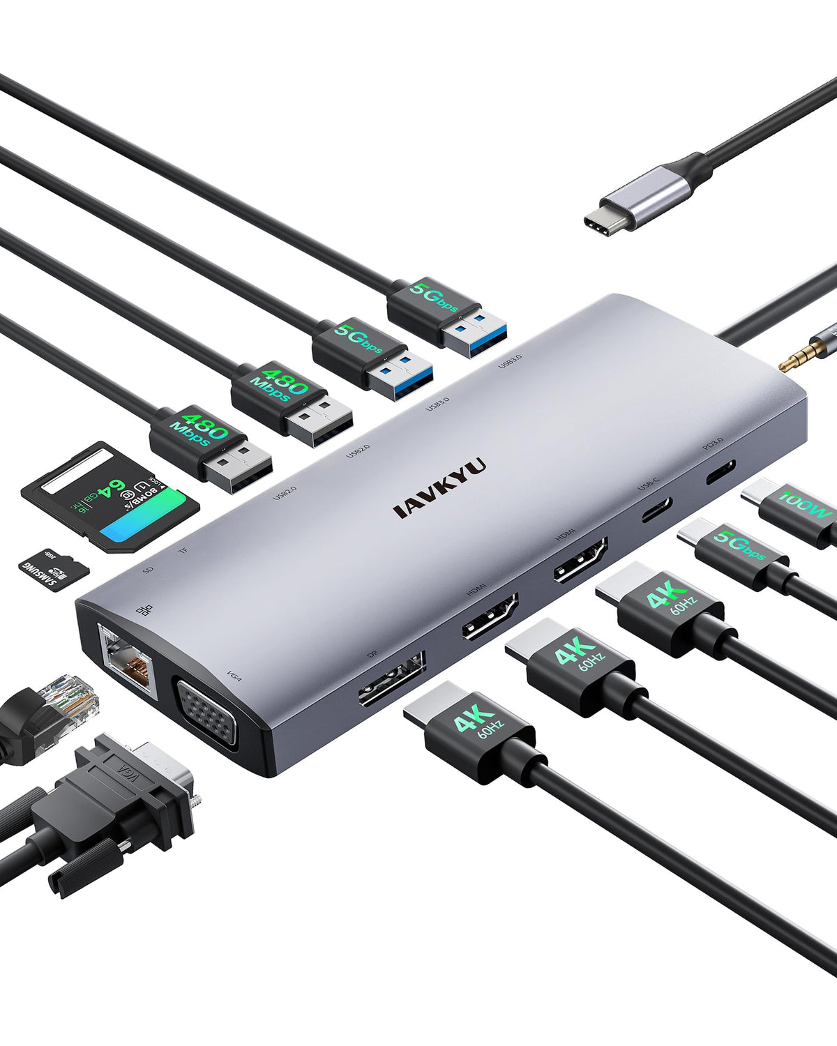 Multi-Functionality:Experience The Versatility Of The Dual Monitor Docking Station For Laptops, Serving As A Hub For Various Adapters Like Usb-C To Hdmi, Usb, Vga, Ethernet, Tf/Sd Card Reader, And More. It Caters To Your Diverse Connectivity Needs, All In One Convenient Device.All-In-One Hub:Simplify Your Setup With The Dual Monitor Docking Station, An All-In-One Hub Featuring Usb Ports, An Sd Card Reader, An Ethernet Adapter, A 3.5Mm Audio Jack, And More. It Provides Easy Access To Essential Peripherals, Streamlining Your Workflow.Wide Compatibility:Experience Seamless Integration With A Wide Range Of Devices, Including Usb-C Laptops, Macbook Air, Macbook Pro, Dell Laptops, Hp Laptops, And More, With The Hdmi Docking Station For Multiple Monitors. Enjoy Compatibility Across Your Workstation, Effortlessly Connecting And Utilizing Your Devices.Durable Construction:The Usb Docking Station Dual Monitor Is Crafted With Advanced Technology And A Sturdy Aluminum Alloy Material, Ensuring Long-Lasting Performance, Reliability, And Durability For Your Workspace.Optimize Productivity:The Computer Docking Station For Laptops Dual Monitor Allows Seamless Connectivity, Empowering Professionals, Students, And Personal Users To Enhance Productivity Across Multiple Devices. Elevate Your Work Efficiency With This Versatile Companion.Portable And Convenient:Unlock The Power Of The 3-Monitor Docking Station, Offering A Portable And Versatile Solution That Optimizes Your Workspace And Connectivity Experience. Whether You'Re On The Move Or At The Office, Enjoy The Convenience And Flexibility It Brings To On-The-Go Professionals, Empowering You To Work Seamlessly Wherever You Are.