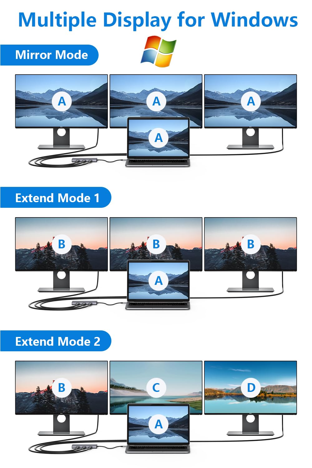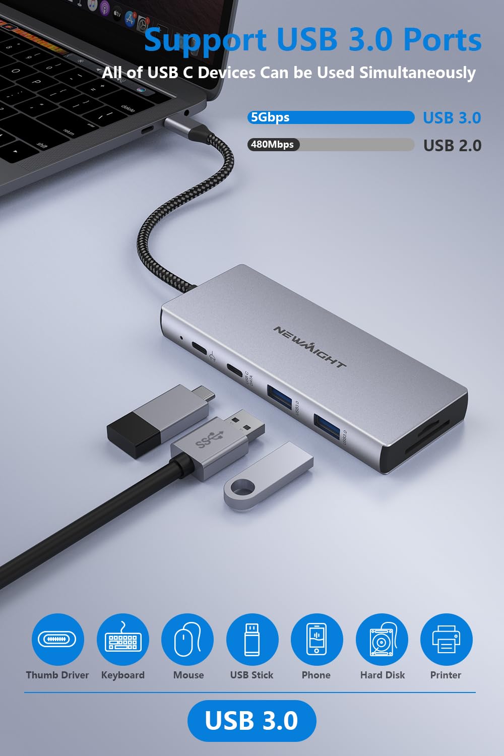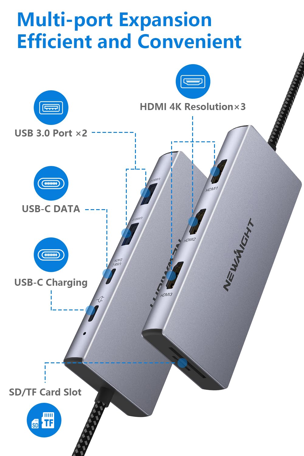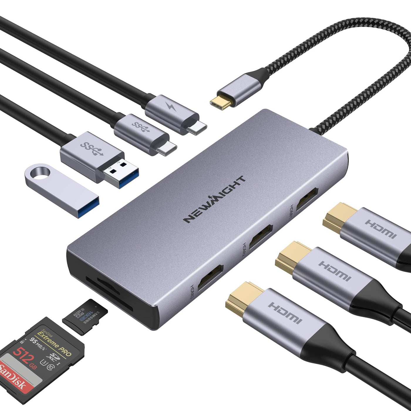 Usb C Docking Station 3 Monitors, Newmight 9 In 1 Usb C Hub Multiple Monitor Adapter With 3 Hdmi 4K, 100W Pd Charging, 2 Usb A 3.0, Usb C 3.0, Sd/Tf Card Reader, Laptop Docking Station For Macbook Hp