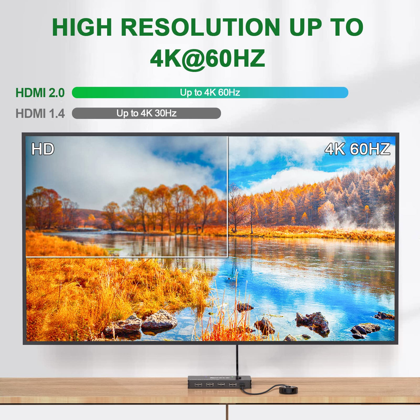 Q: What is the maximum resolution supported by the USB C KVM Switch?A: The USB C KVM Switch supports resolutions up to 4K@60Hz, as well as 2K@120Hz, 1440P@100Hz, and lower resolutions like 4K@30Hz and 1080P. Ensure that your computer and monitor support 4K resolution for optimal performance.