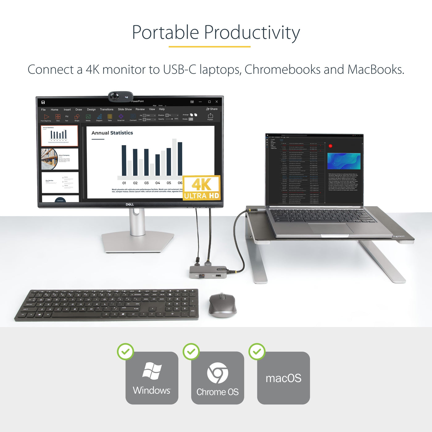 Usb-C Multiport Adapter W/Hdmi 2.0B 4K 60Hz Video Via Dp 1.4 Alt Mode For Monitor/Display - 3-Port Usb-A Hub (1X Usb 3.2 5Gbps, 2X Usb 2.0) - Works With Chromebook (Wwcb) Certified For Guaranteed Compatibility And Automatic Google Updates - Portable Travel Docking Station W/12'' Cable Works W/Usbc/Tb3/Tb4/Hp/Dell/Lenovo/Surface/Macbook/Chromebook/Windows/Macos - Bus-Powered Mini Dock Or 100W Pd 3.0 Pass-Through (14W For Adapter/86W Charging) W/Type-C Laptop Power Adapter.