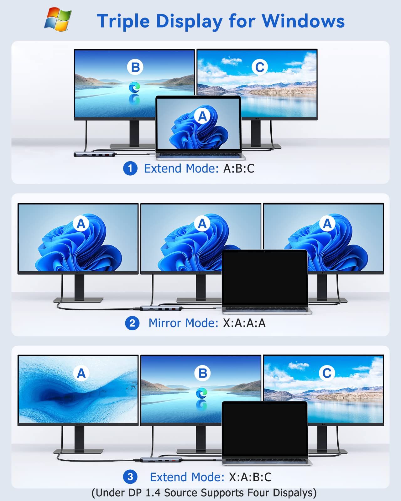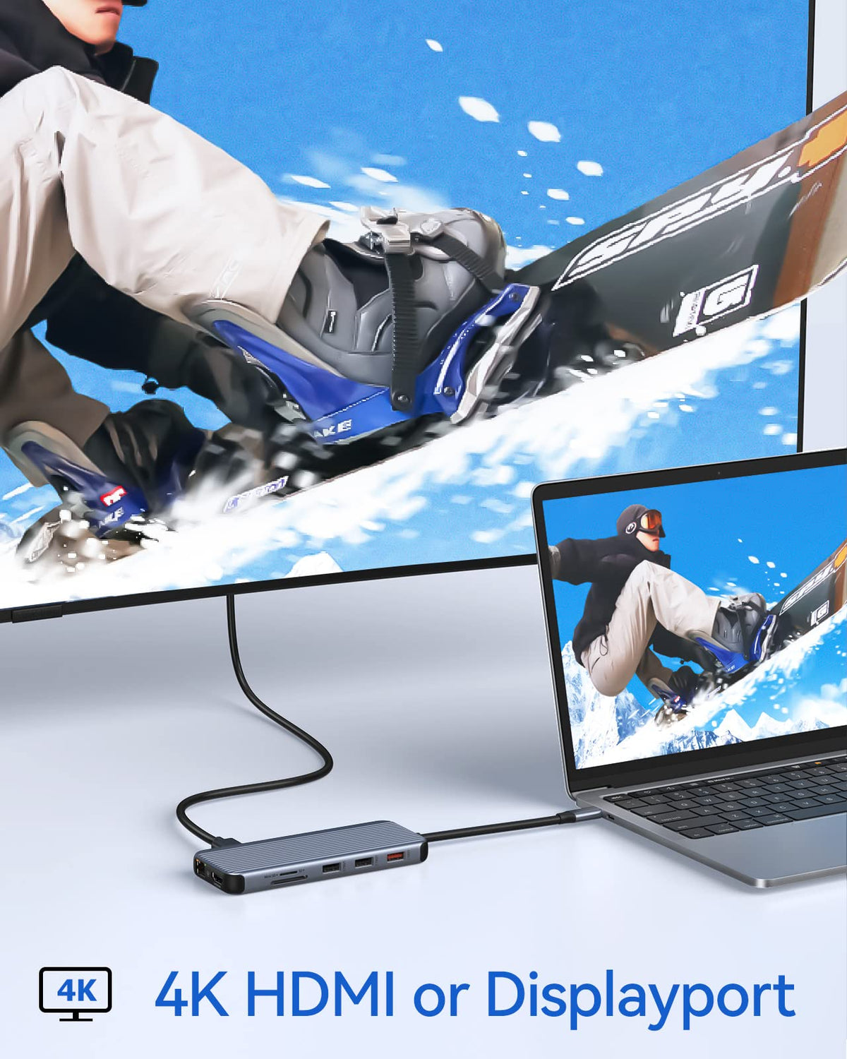 The New 10G Dual Displayport 8K Usb C Docking Station, An Upgraded New Product With Higher Specifications And Stable Performance. When The Docking Station Is Connected To One Monitor Alone, It Can Get Up To 8K@30Hz Resolution (When The Source Is Dp1.4), Giving You A Different Visual Experience. When The Adapter Is Connected To Two Monitors, It Can Get A High Resolution Of Dual 4K@60Hz. Watch Movies Or Play Games Without Dropping Frames And Enjoy A Wider Visual Experience. When The Dock Is Connected To Three Monitors, It Can Still Get Triple 4K Resolution Up To 4K@60Hz And Two 4K@30Hz. The 10Gbps Fast Usb Ports, Each With One Usb A And Usb C, Both With 10Gbps Speed, Can Save More Time By Connecting A Usb Flash Drive Or A Hard Drive For Large Games Or Large Files In No Time. The 1000Mbps Gigabit Ethernet Port Provides A Stable 1G Network Speed (Depending On Your Network), No More Worrying About Wireless Network Interruptions. When Laptop Docking Station Is Used While Charging, Don T Worry About Losing Power. The Pd Charging Port Is Compatible With Up To 100W Power Input, Providing 87W Power To Your Laptop, When You Connect Multiple Devices, Please Connect The Power Supply To Ensure Enough Power To Work. High Specification Sd/Tf 4.0 Slot, Read And Write Speed Can Reach Up To 250M/S, It Is A Faster And More Stable Partner For Your Photography Work.