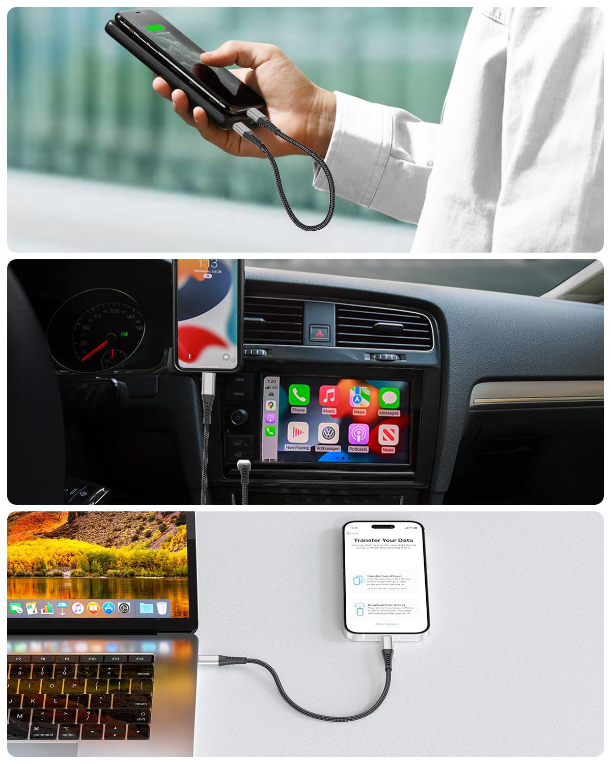 Usb C To Lightning Cable 1Ft, 3-Pack [Mfi Certified] Braided Lightning Cord Fast Charging Compatible With Iphone 14 13 12 11 Pro Max Xr Xs 8 Se