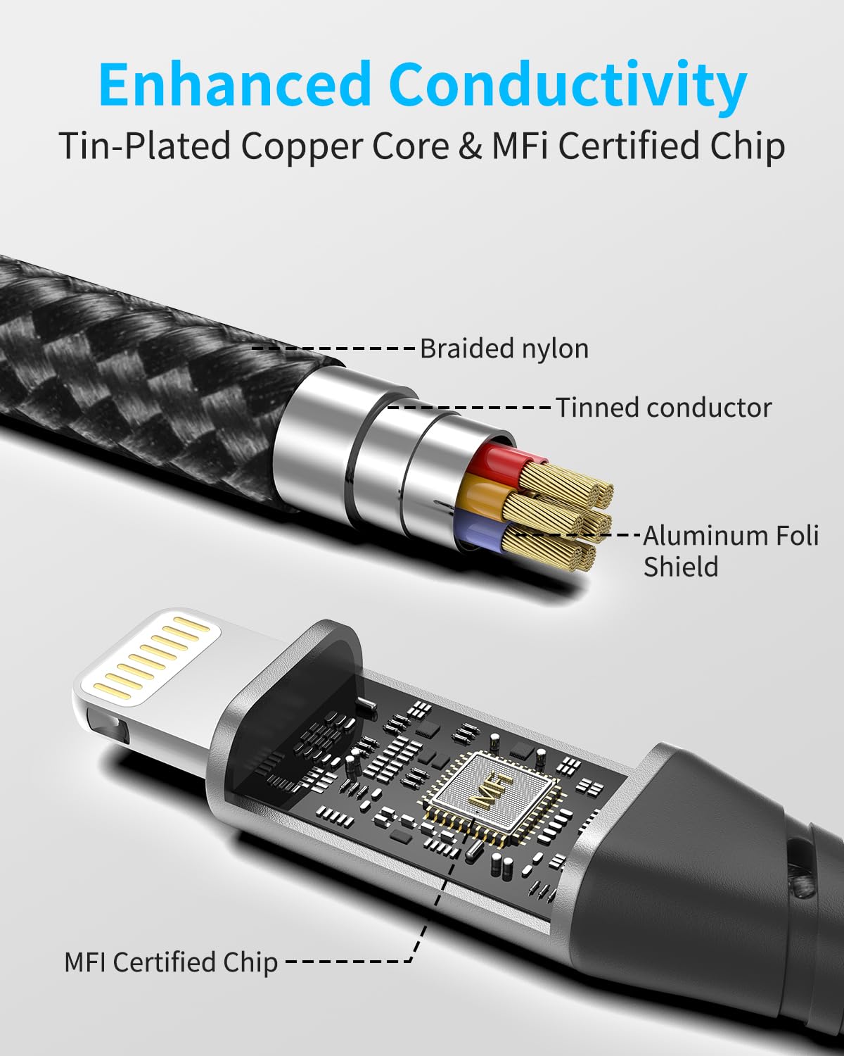 Usb C To Lightning Cable 1Ft, 3 Pack [Mfi Certified] Braided Lightning Cord Fast Charging Compatible With Iphone 14 13 12 11 Pro Max Xr Xs 8 Se