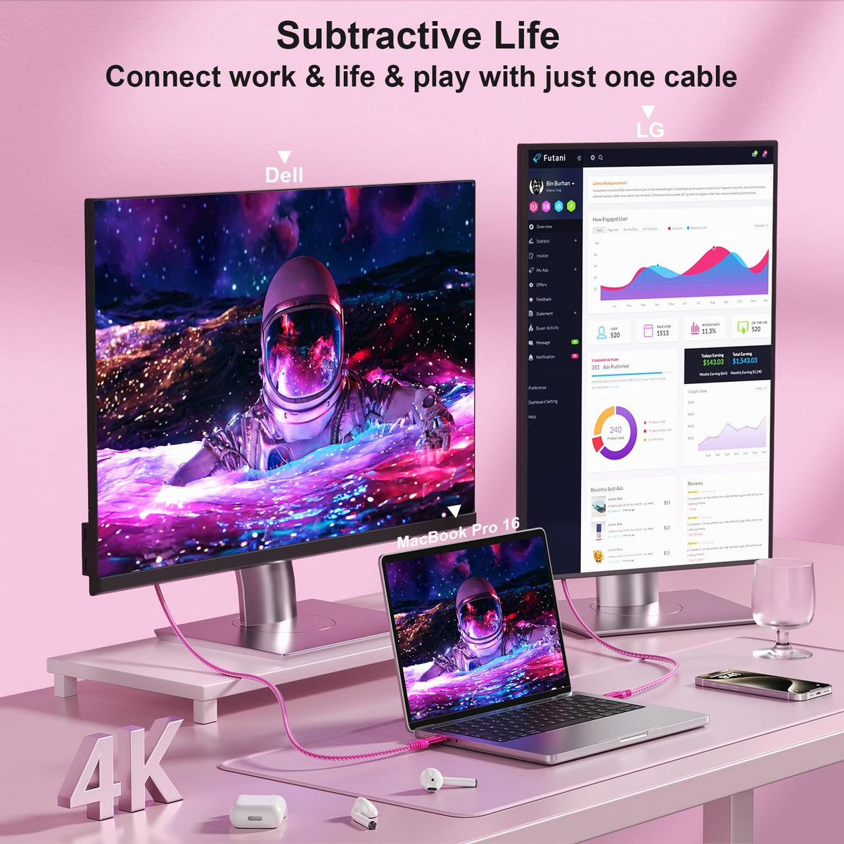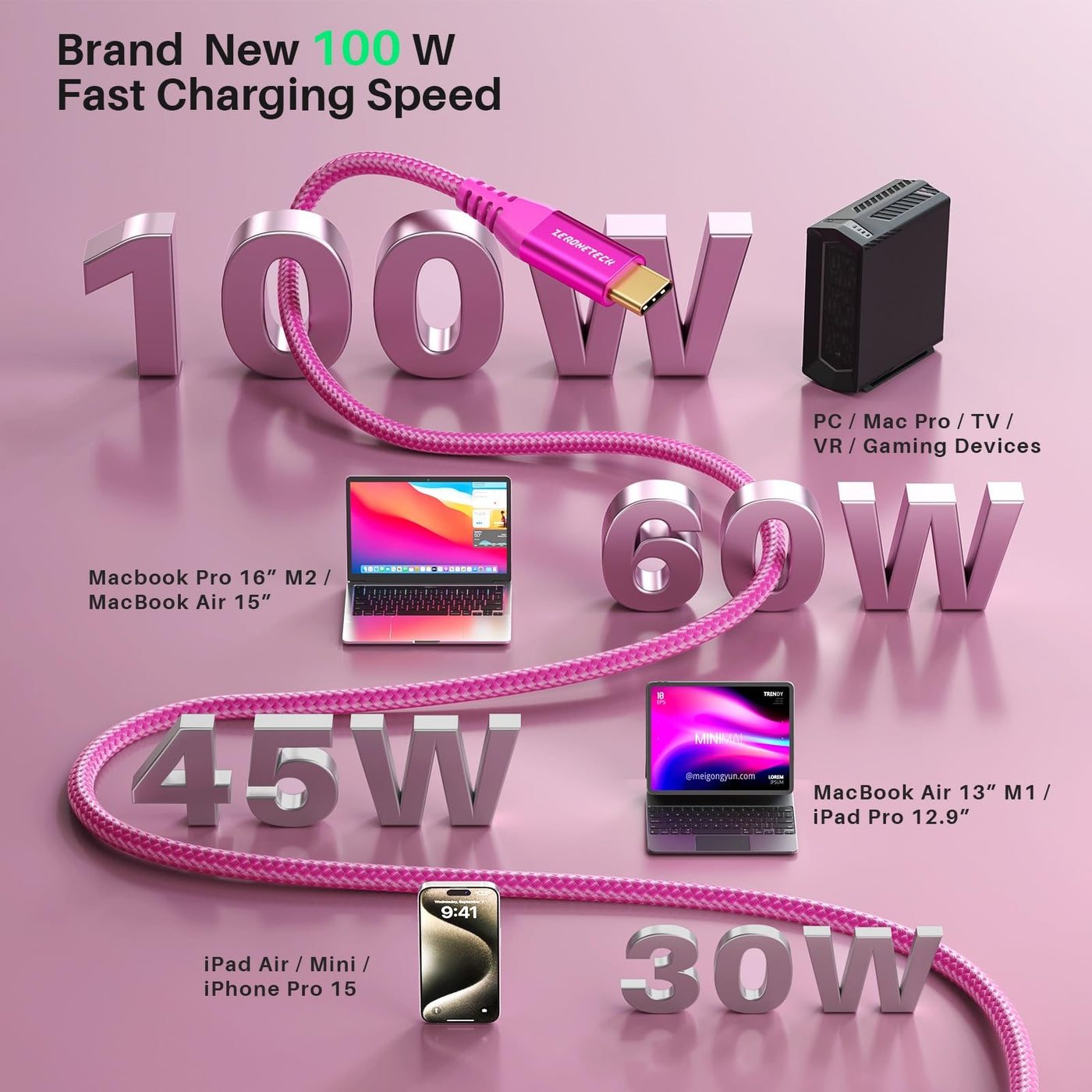 Product Name: Usb Type C Cable Product Model: Usb C 3.2 Gen 2 Usb C To Usb C Video Monitor Cable Product Size: 3/6Ft Product Color: Pink Product Material: Nylon Braid Product Parameters: 20Gbps & 4K@60Hz & 100W 20V 5A Product Adaptation: The Latest Macbook, Google Pixel Xl/2/2Xl/3/3Xl/3A/3A Xl, Pixelbook, Chromebook Pro, Galaxy S23/S22/S21/ S21+/ S21 Ultra/ Note 10/ Note 10 Plus/ A80, Lg, Nexus 6P 5X And Other Newly Launched Usb C Smartphones, Tablets And Laptops. Product Scene: Living Room And Bedroom, Rv, Company Office, Milk Tea Shop And Coffee Shop, Bar And Restaurant, Hotel, Camping Picnic, Internet Cafe And Game Hall, Private Cinema, Database Room. Other: If You Have Any Questions, Please Contact Us Via Email, Our Professional Customer Service Will Do Our Best To Help You Solve The Problem!
