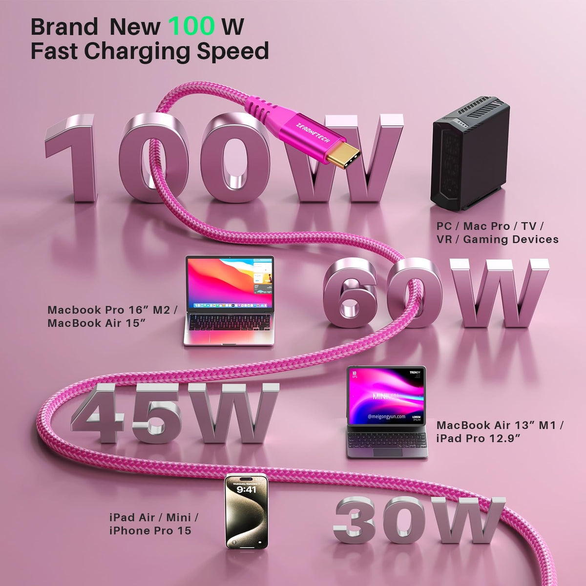 Usb C To Usb C Cable 6Ft, Usb C 3.2 Gen 2 Cable(Barbie Pink), 4K Usb C To Usb C Monitor Cable, 20Gbps Usb C To Usb C Data Cable,