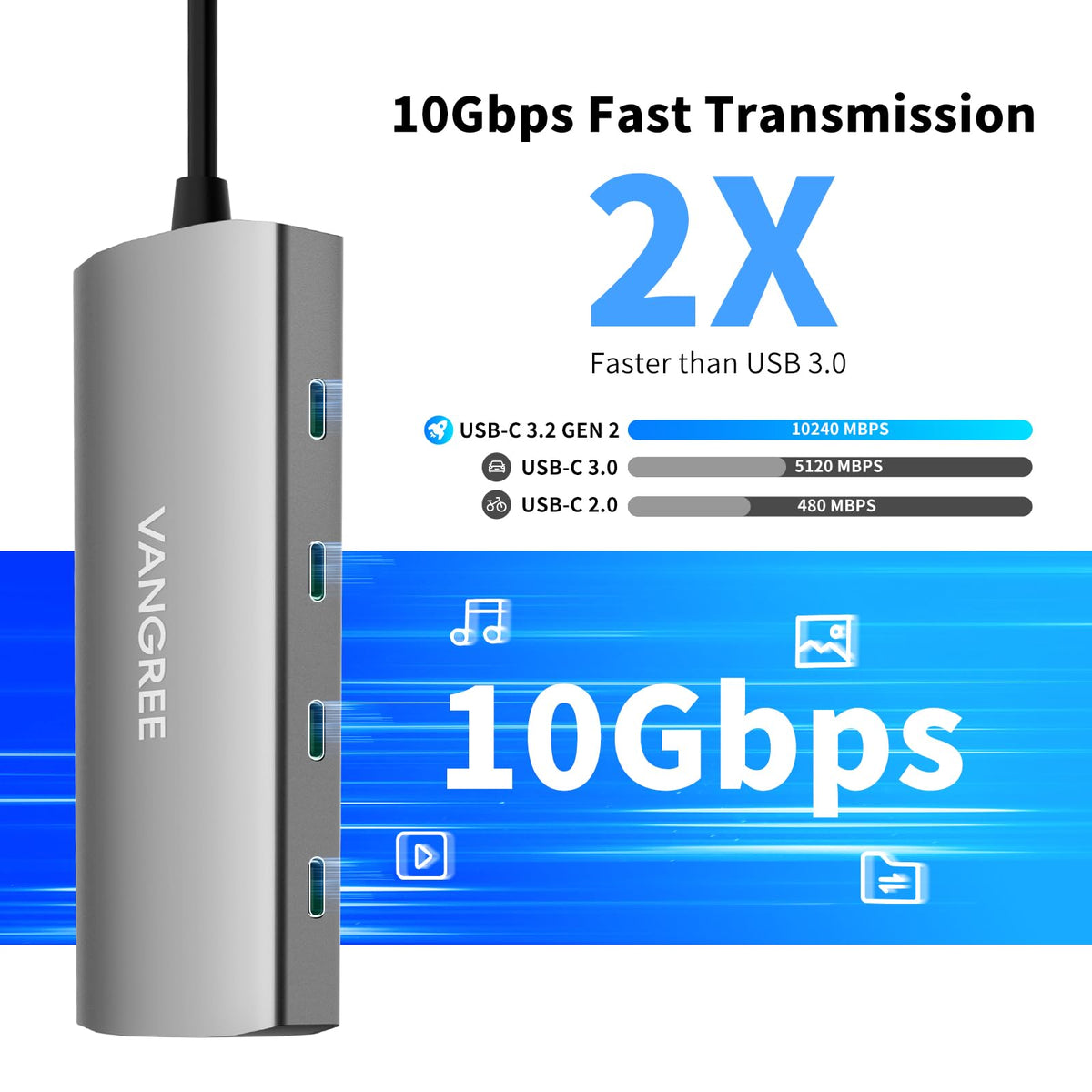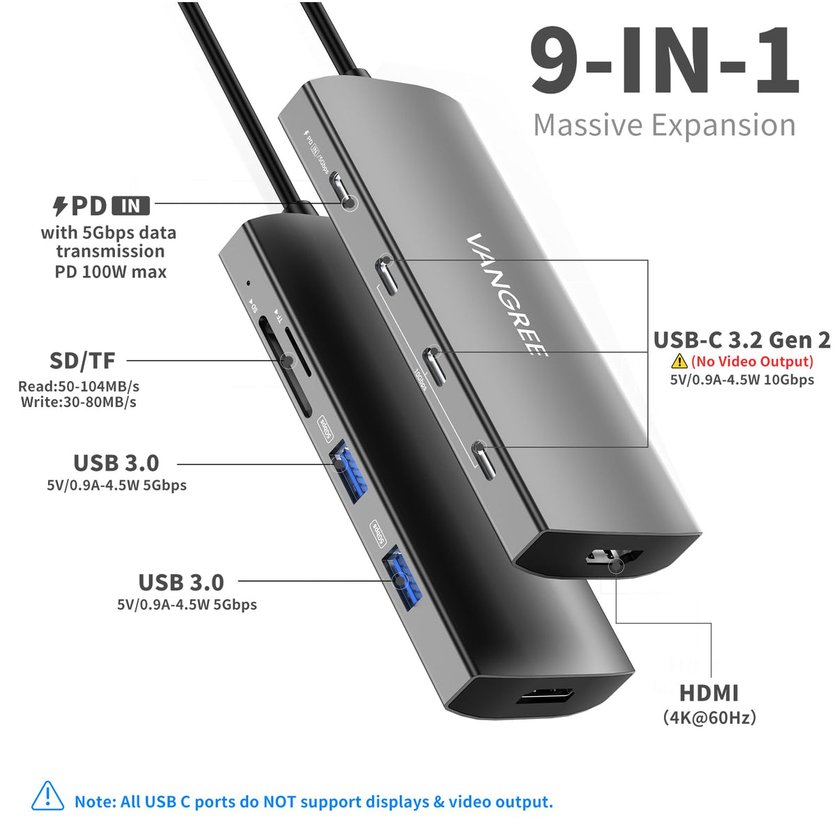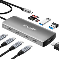 Vangree 9 In 1 Usb Hub For Laptop: The Vangree Usb C Hub Expands A Single Type-C Port Into 2 Usb 3.0 Ports, 3 Usb C Ports, 100W Pd, 4K Hdmi, Sd/Tf Card Slot, Transferring Or Backing Up Your Data Easily And Quickly. A Single Usb C Port Connects More Type-C External Devices Including Hard Drives, Flash Drives, Mice, Etc. Note: The Usb C Port Only Supports Data Transfer, Not Computer Power Charging And Video Output.