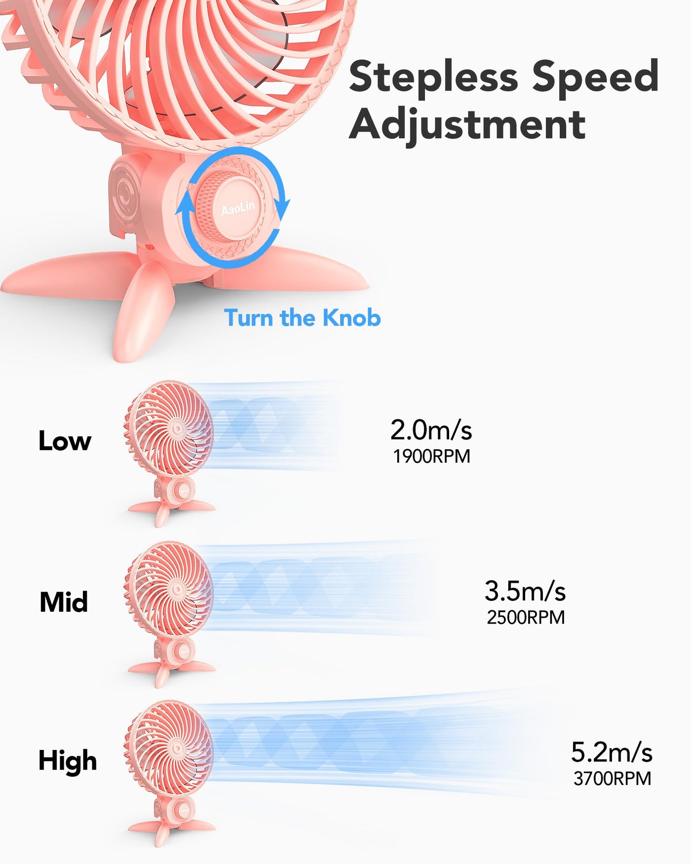 Q: Can I adjust the speed of the fan?A: Yes, the AaoLin USB Small Fan comes with stepless speed regulation. You can easily turn the knob to enjoy a gentle breeze or a strong airflow, allowing you to customize the fan speed to your preference in different scenarios.