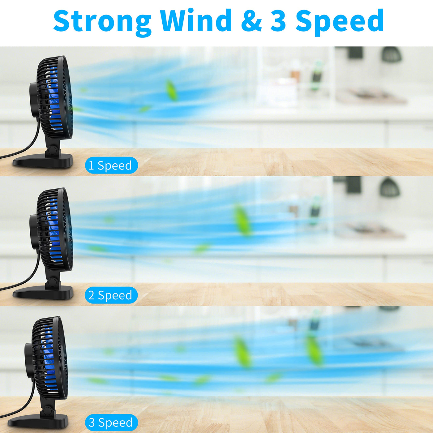 Q: What settings does the USB fan offer for airflow?A: The USB fan features three adjustable speed settings, allowing you to customize the airflow to your comfort level while enjoying powerful cooling.