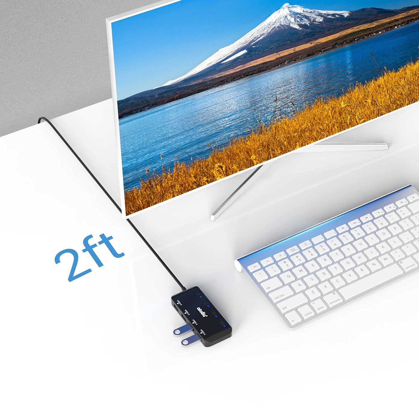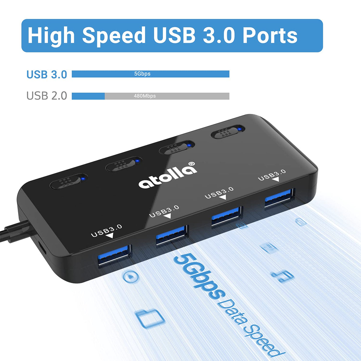 Usb Hub, 4-Port Usb 3.0 Hub Splitter With 2 Ft Extended Cable, Ultra Slim Data Usb Extender With Individual Power Switches And Led
