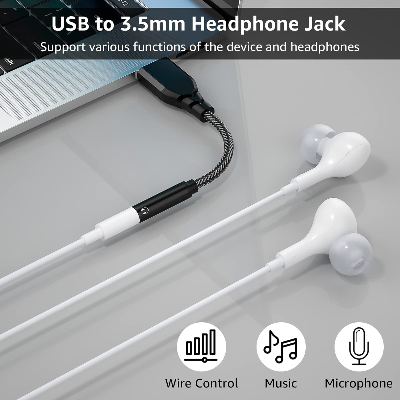 2-In-1 Usb To 3.5Mm Headphone Adapter: The Computer Adapter Is Able To Connect A Trrs 4-Pole Ctia&Omp 3.5Mm Headset, Trrs Mic Or Speaker To Devices With Usb Type A Port. It Supports Listening, Calling, Wire Control And Other Functions On The Headphones; Speaking Functions Of Microphones; And Playing Functions On The Speaker. Plug And Play: This Computer External Stereo Sound Card Requires No Drivers At All. Plug And Play, It Is Very User-Friendly. *Please Notice That The Usb Port Connected Should Be Output, Not Input. Audio Can Only Transfer From Usb Port To 3.5Mm Port. Usb To Audio Jack Adapter Is Not Suitable For Amplifiers, Cd Players, Xbox, Car Or Truck Usb Ports. Hi-Fi Sound Quality: This Usb C To 3.5Mm Adapter Is Built With Audio Dac Noise Reduction Chip That Allows Up To 24Bit/96Khz High-Definition Sound. High Fidelity Design To Ensure Stable And No Loss Transmission Of Audio Signal, Allowing You To Immerse Yourself In Clear Sound. Premium Quality: Designed With Tough Nylon Braided Outer Layer, The Adapter Cable Is Very Strong. Aluminum Alloy Helps To Construct The Case For Longer Lasting Use. Anti-Breakage Design Saves The Cord From 20000+ Bending Tests. Come With Adapter Carrying Case, Easy To Carry And Protect Your Usb Aux Dongle Cable Away From Wet, Dirt And Dust. Universal Compatibility: Support Ctia Standards Jack, Android Earphones. Support Windows 10/ 8.1/ 8/ 7/ Vista/ Xp, Mac Os X, Linux, Google Chromebook, Windows Surface 3 Pro, Raspberry Pi And Ps4/Ps5 Etc. Note: The Usb Audio Adapter Does Not Work With Ps3 Since The Usb Interface On Ps3 Does Not Carry Audio Signal. Package: 1*Usb To 3.5Mm Jack Aux Adapter 1*Carrying Case
