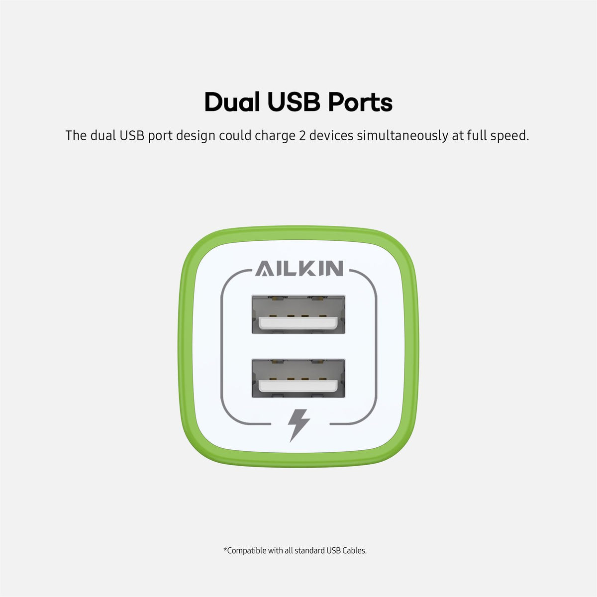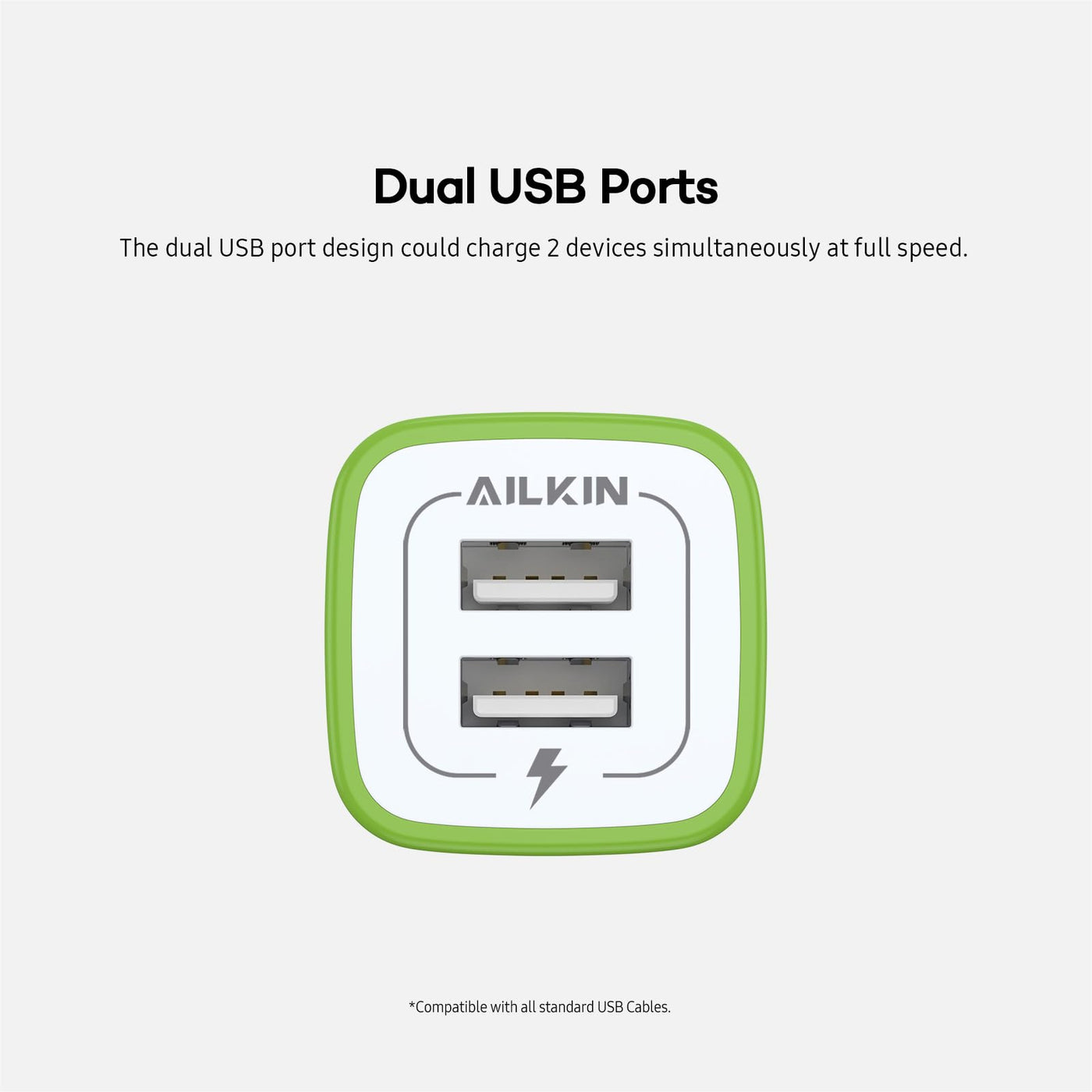 Q: What comes in the package with the AILKIN USB Wall Charger?A: The package includes two dual-port USB wall chargers, providing you with the convenience of charging multiple devices at once.