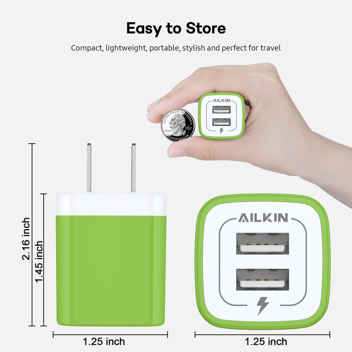 Usb Wall Charger, [2 Pack] 2.1A Ailkin 2 Port Usb Phone Charger Block Plug Power Adapter Charging Base For Iphone 15 14 Plus/Min