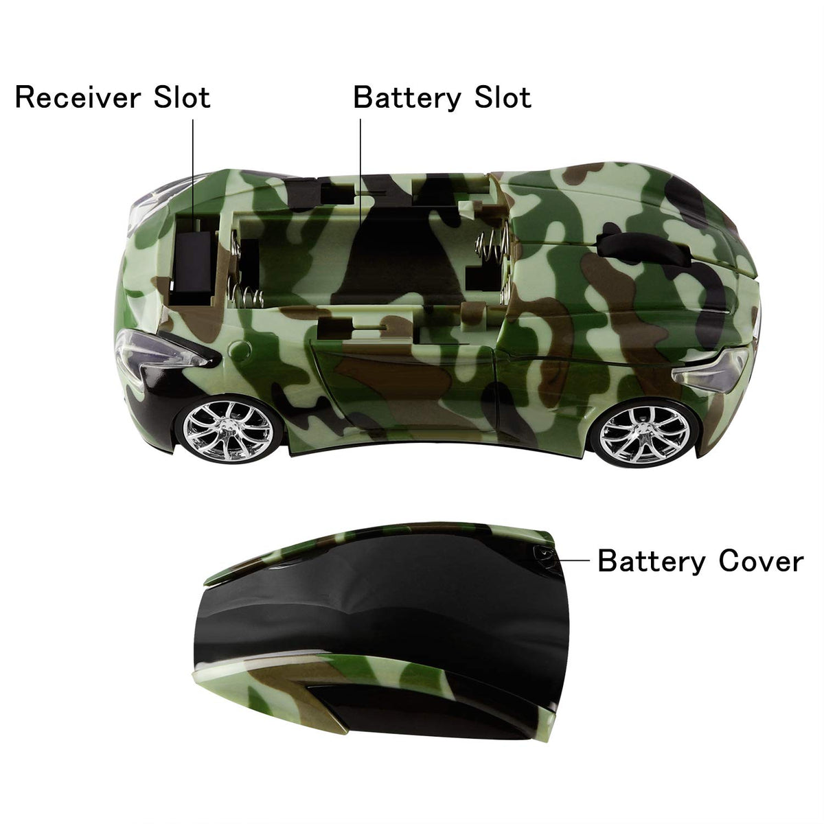 Wireless Usb Optical Mouse Sport Car Shape For Pc Laptop Computer Notebook,Good Choice As Gifts For Kids Or Girls,Also Suitable For Adults. How To Use: 1.The Usb Receiver Is Placed Inside The Upper Cover,Backside Of The Battery Slot. 2.Please Push The Upper Housing,Then You Can See The Usb Receiver And Battery Slot,Please Check The Last Photo On The Listing. 3.Take Out The Usb Receiver, Then Plug The Usb Into Computer. 4.Prepare 2* Aaa Battery When You First Use It(Not Included). 5.The Mouse And Receiver Will Connect Automatically In A Few Seconds. Notes: 1.About The Led Light,Only The Headlights Has Blue Led Light,The Light Is Not Strong,As It Has No Individual Switch For The Led Light,This Also Could Save Battery Power. 2.It Will Be Better If Plug The Usb Receiver And Turn On The Mouse At Same Time. Energy-Saving If The Mouse Is Not Used For Short Time, It Will Turn To Power Saving Mode To Save Energy. Features Interface: Usb 2.0;Plug And Play Mode, No Need Driver Powered By 2 * Aaa Battery (Not Included),Size: 4.4*2.16*1.42 Inch,Net Weight: 2.12 Oz,1600 Dpi,3 Buttons 2.4G Wireless Transmission Enjoy The Fast Data Transmission At The Convenience Of The Wireless Technology.Operation Distance Is Up To 10 Meters Compact Receiver The Tiny Usb Receiver Can Be Inserted Into The Slot Inside The Upper Cover, Allowing Ease Storage When Not Used. Wide Compatibility Compatible With Windows Xp, Vista, Win 7, Me,2000,For Macbook,Linux And More. Comfortable Hand Feeling With Cool Design And High Quality Material,This Wireless Mouse Give You Special Experience In Using It. Package Included: 1 X Car Shape Wireless Mouse 1 X Usb Receiver(Placed Inside The Roof,Backside Of The Battery Slot)