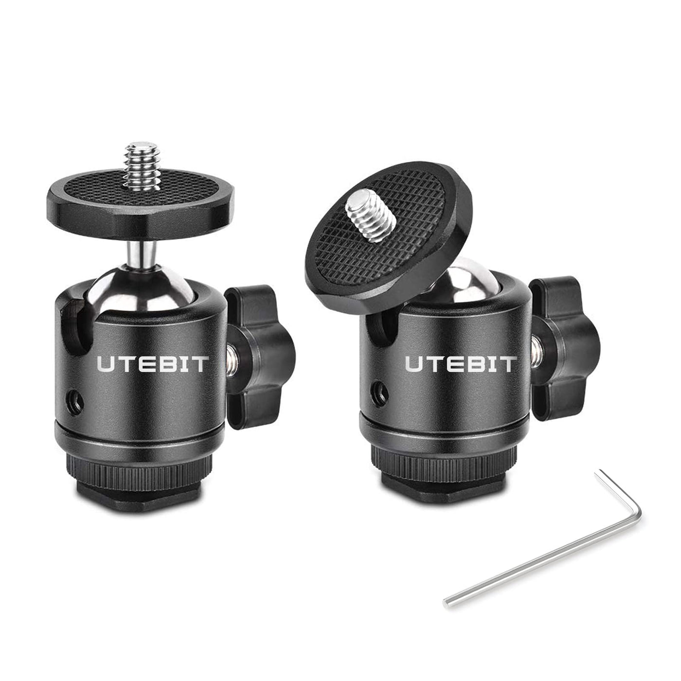 Utebit 2 Pack Mini Ball Head With 1/4 Hot Shoe Mount Adapter Max Load 5.5Lb 360 Swivel Tripod Ball Head For Dslr Camera Camcorde