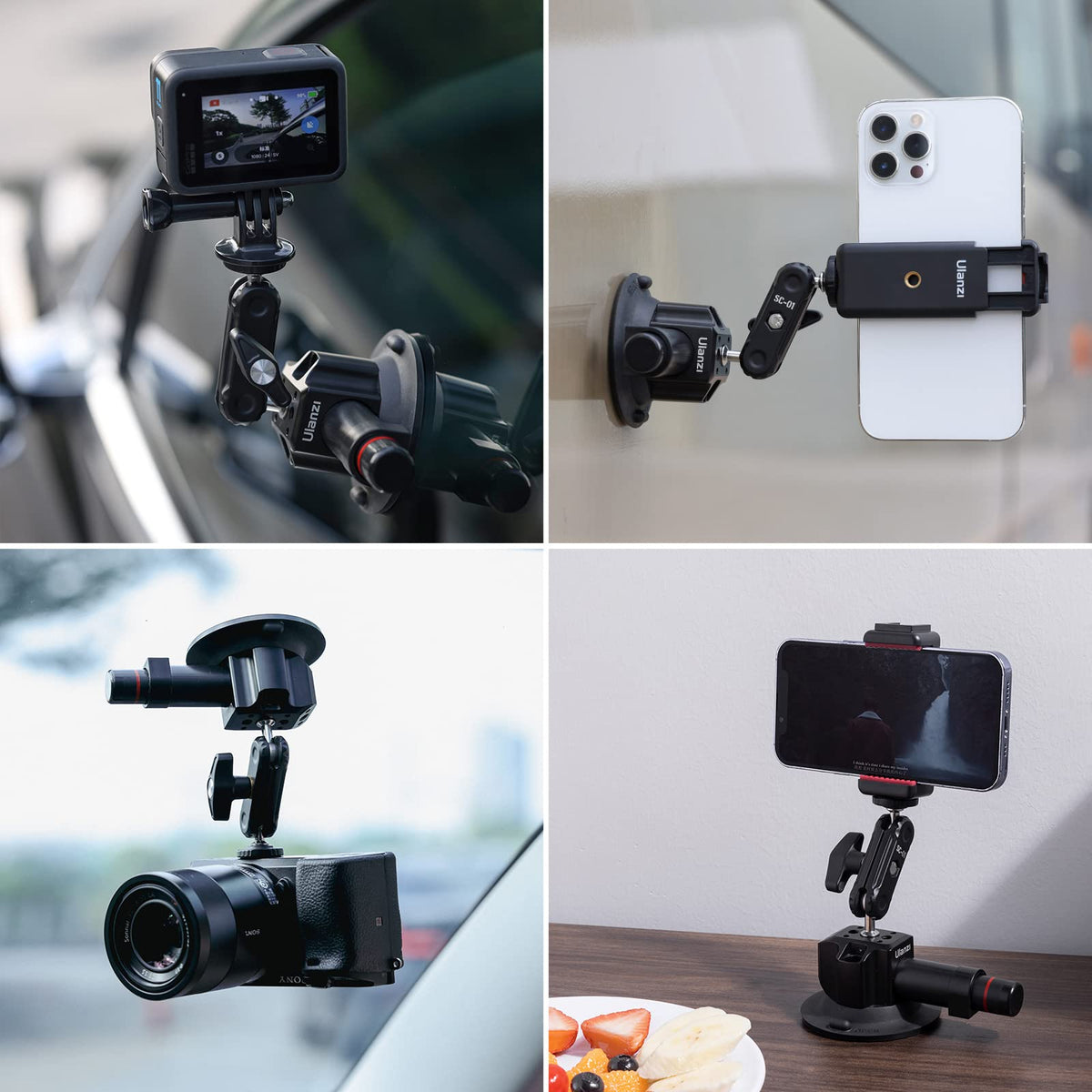 Uurig Sc-01 Suction Mount 3 For Vlogging Action Camera Car Mount W Smartphone Clamp For Iphone 14 13 Pro Max, 1/4 Magic Arm Adap