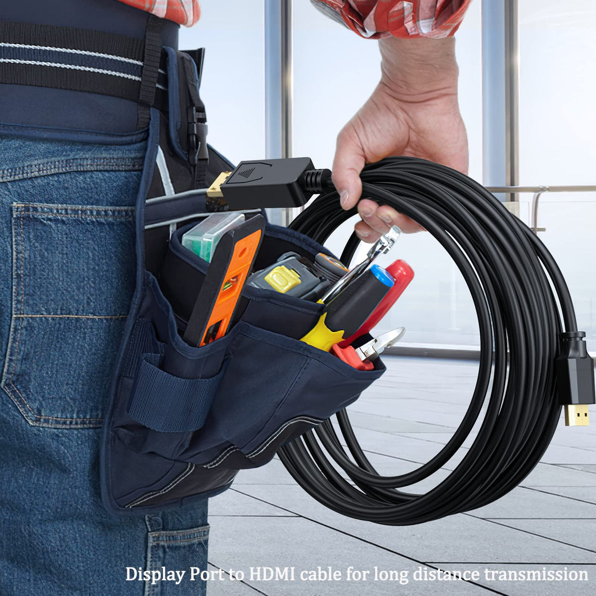Q: What materials are used in the construction of this cable?A: The UVOOI DisplayPort to HDMI Cable is made from strong, flexible materials and features gold-plated connectors with molded strain relief to resist corrosion and enhance durability.