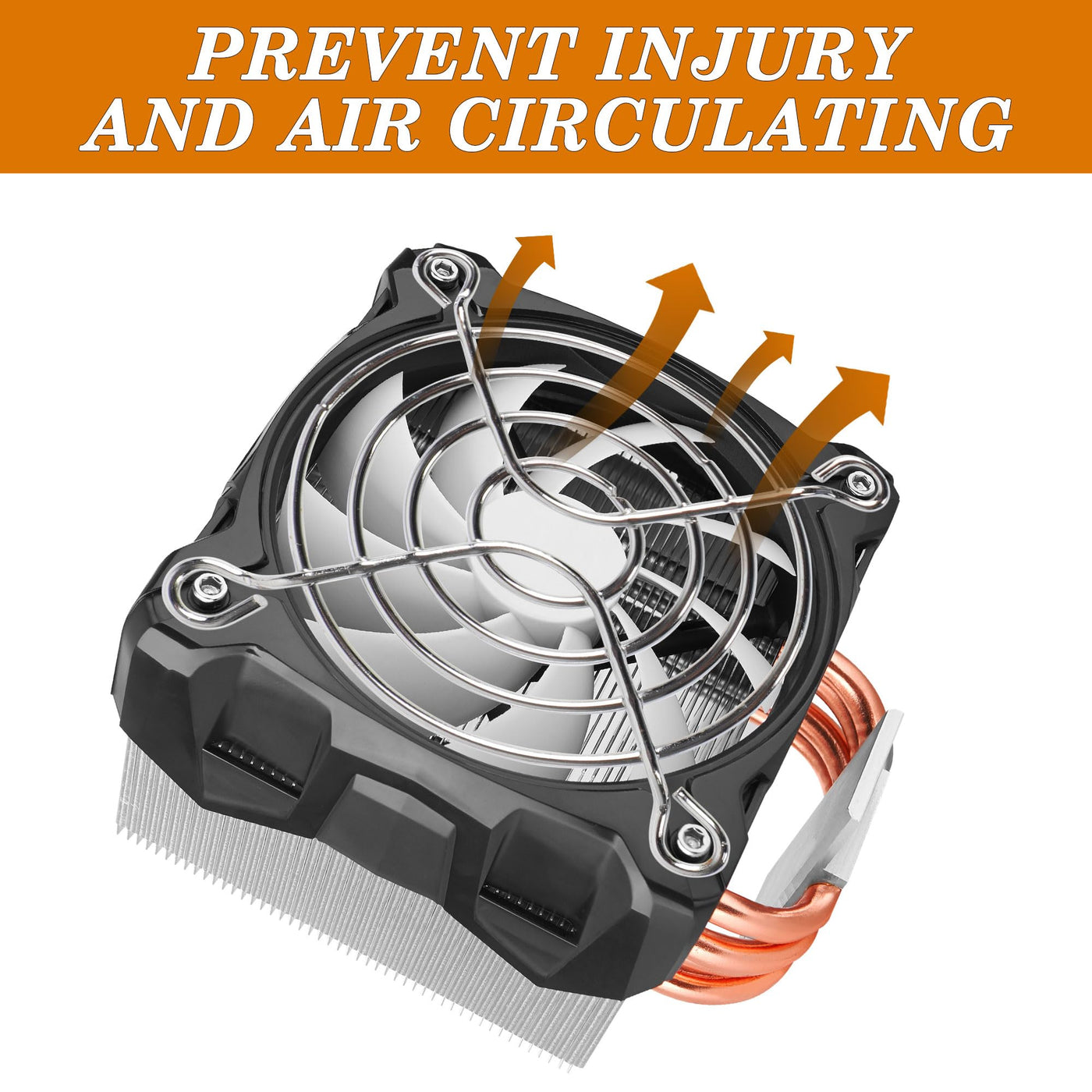 Q: What material is the fan grill made of?A: The fan grill is made of high-quality metal, providing durability and long-lasting protection for your cooling fan.